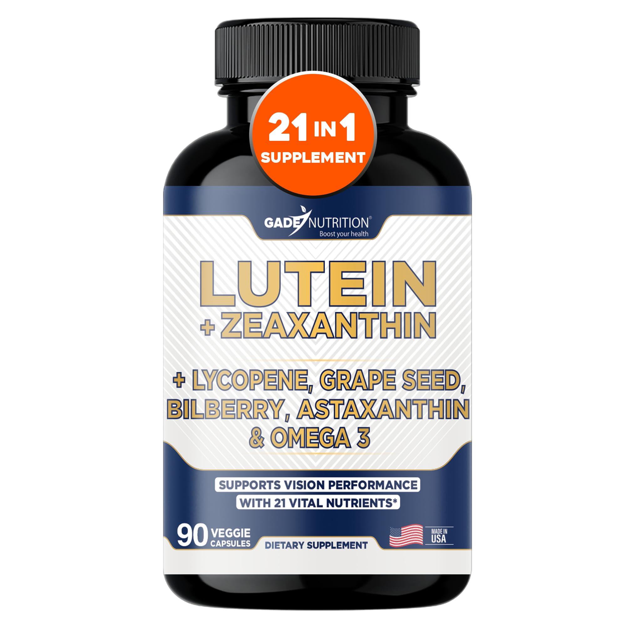 SAFE STANDARD QUALITY: Our products are manufactured in the USA with all-natural, fast-dissolving veggie capsules. Made in an FDA-registered laboratory that is GMP certified. We hold ourselves to high standards of natural purity, Potency, and Third Party Tested. Trust Gade Nutrition for a high-quality supplement. Our pills are made with non-GMO, gluten-free, sugar-free ingredients, no stimulants, no binders, no fillers, no allergens, and no chemicals. RESTORE AND PROTECT: Our blend offers a full suite of essential nutrients to maintain your eyes health. Lutein from marigold extract largely makes up the macular pigment, helping to protect the eyes. Zeaxanthin is a protective pigment in the fovea, it’s available from a few dietary sources, but it is much more difficult to find high sources in our diet. That is why supplementation is often necessary. NATURAL HIGH QUALITY EYE VITAMINS: Lutein plus Zeaxanthin capsules include a range of premium ingredients. Omega 3 amplifies the effectiveness of our formula. Bilberry may protect the retina and improve night vision. Quercetin and Bromelain are well known for their powerful antioxidant properties. Combined with Ginkgo Biloba, Resveratrol and vitamins D, A, E C, B12, our blend offers a holistic approach to eye care. HEALTHY VISION: Lutein and Zeaxanthin are well-known carotenoids present in a variety of fruits, vegetables, and plants. Our supplement works synergistically to give a comprehensive, effective complement for eye health. It helps combat eye fatigue and dry eyes, preserves retinal health and supports macular health. Our eye vitamins also contain extra high-performing antioxidants. ADVANCED EYE SUPPORT SUPPLEMENT: Gade Nutrition Lutein with Zeaxanthin supplement has included lycopene, resveratrol, grapeseed, bilberry, astaxanthin, omega 3, vitamin E, and more. Our powerful combination helps neutralize free radicals and support optimal eye health, making our supplement an excellent choice for adults seeking to protect their vision and eye health. Our blend offers exceptional eye care in each capsule, along with other potent antioxidants.