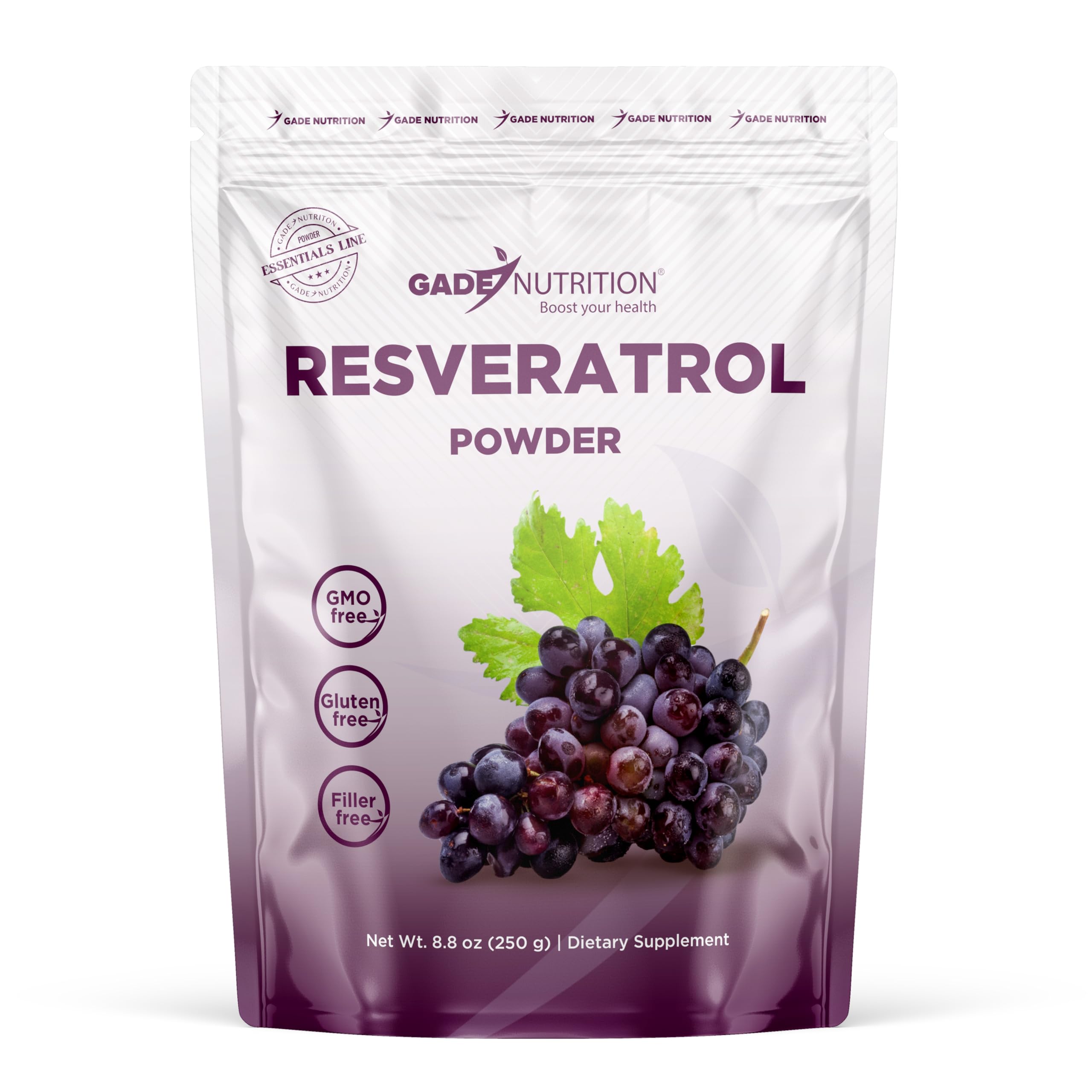 Gade Nutrition Resveratrol Polygonum Cuspidatum | Non-GMO, Gluten-Free, Dairy Free, Vegan | 250g (8.8 oz), 1000mg per Serving, 250 Serving | Potent Antioxidant Supplement | USA Made