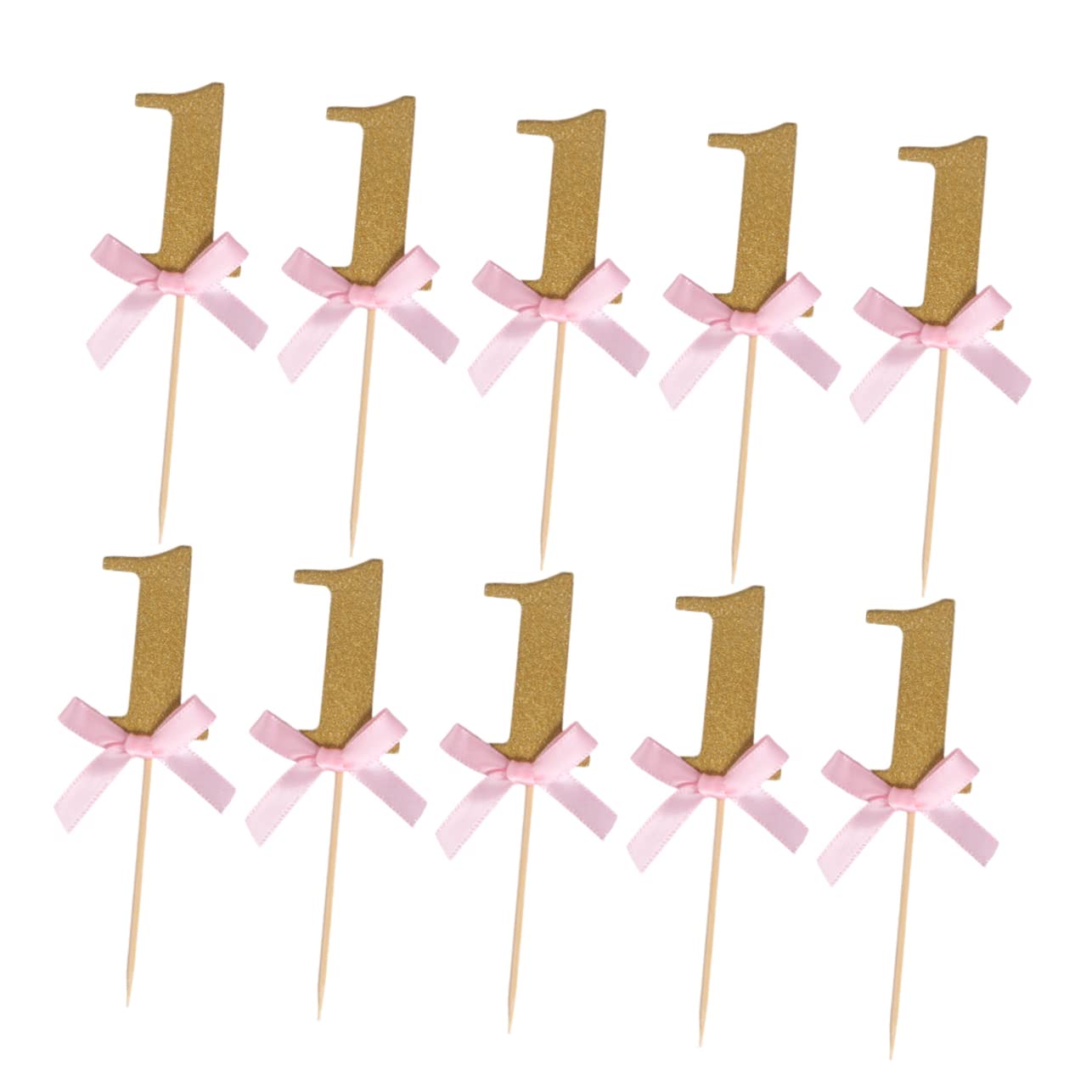Gadpiparty 10 Pcs First Birthday Wedding Fondant Topper Baby Shower 1st Birthday 1 Year One Year Old Birthday Cake Picks Stick Glitter Cupcake Picks Cakes Cake Topper Insert Card Number