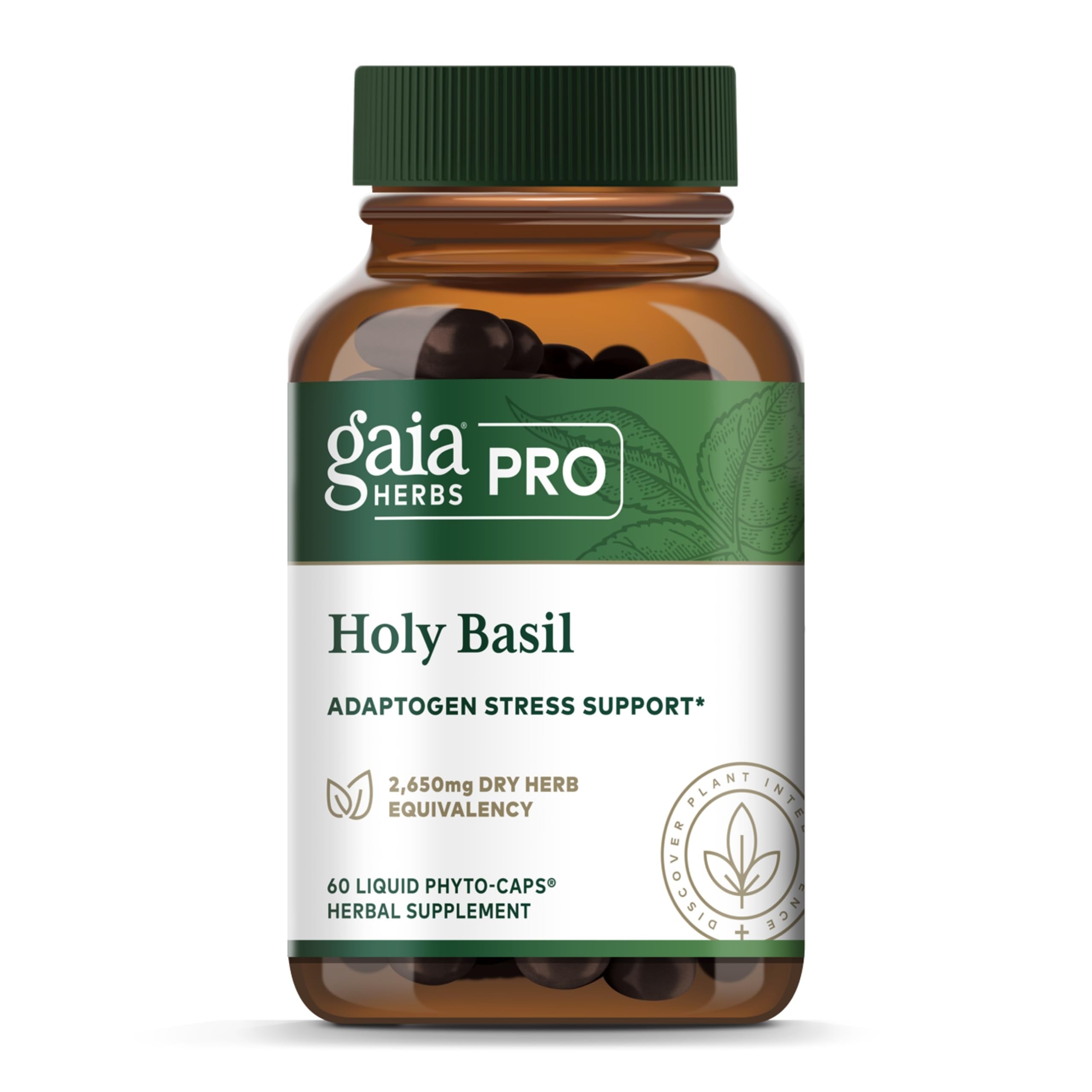 GAIA HERBS PRO Holy Basil - Stress Support Supplement - Contains Organic Holy Basil Leaf - Vegan Gluten-Free & Soy-Free - 60 Liquid Phyto-Caps (60 Servings)
