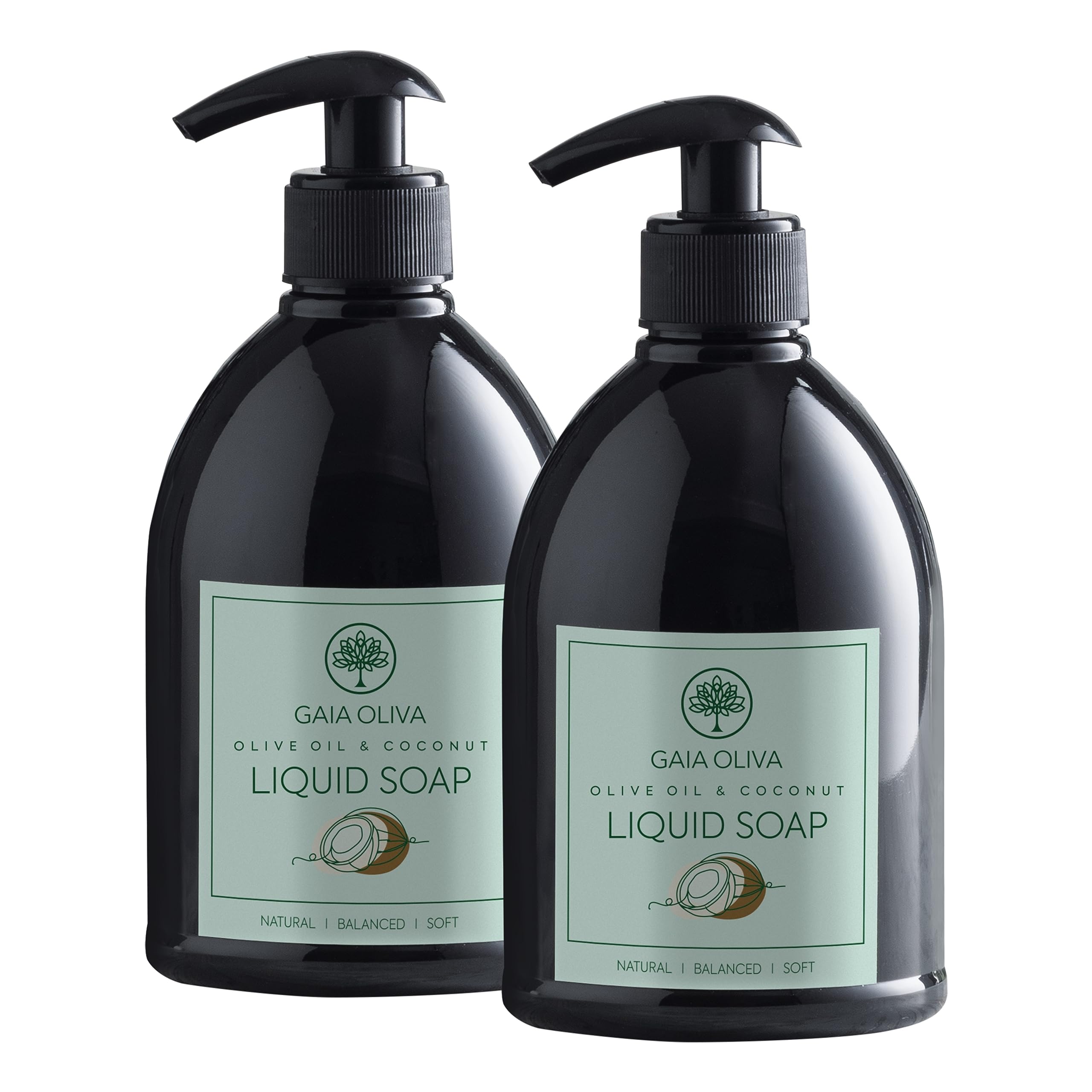 GAIA Oliva Olive Oil Hand Soap Liquid Luxury Moisturizing Liquid Hand Soap for Bathroom & Kitchen Natural Ingredietns for Dry Cracked Hands with Coconut Scent 16.9 FL OZ Bottle (Pack of 2) Coconut 16.9 Fl Oz (Pack of 2)