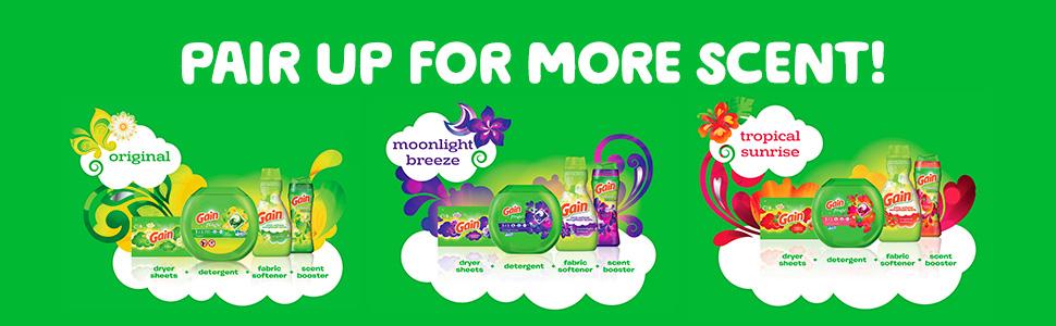 Works with your favorite Gain Detergent. Just add all the scent beads you want directly in the drum. Don't worry, we won't tell how much that is.