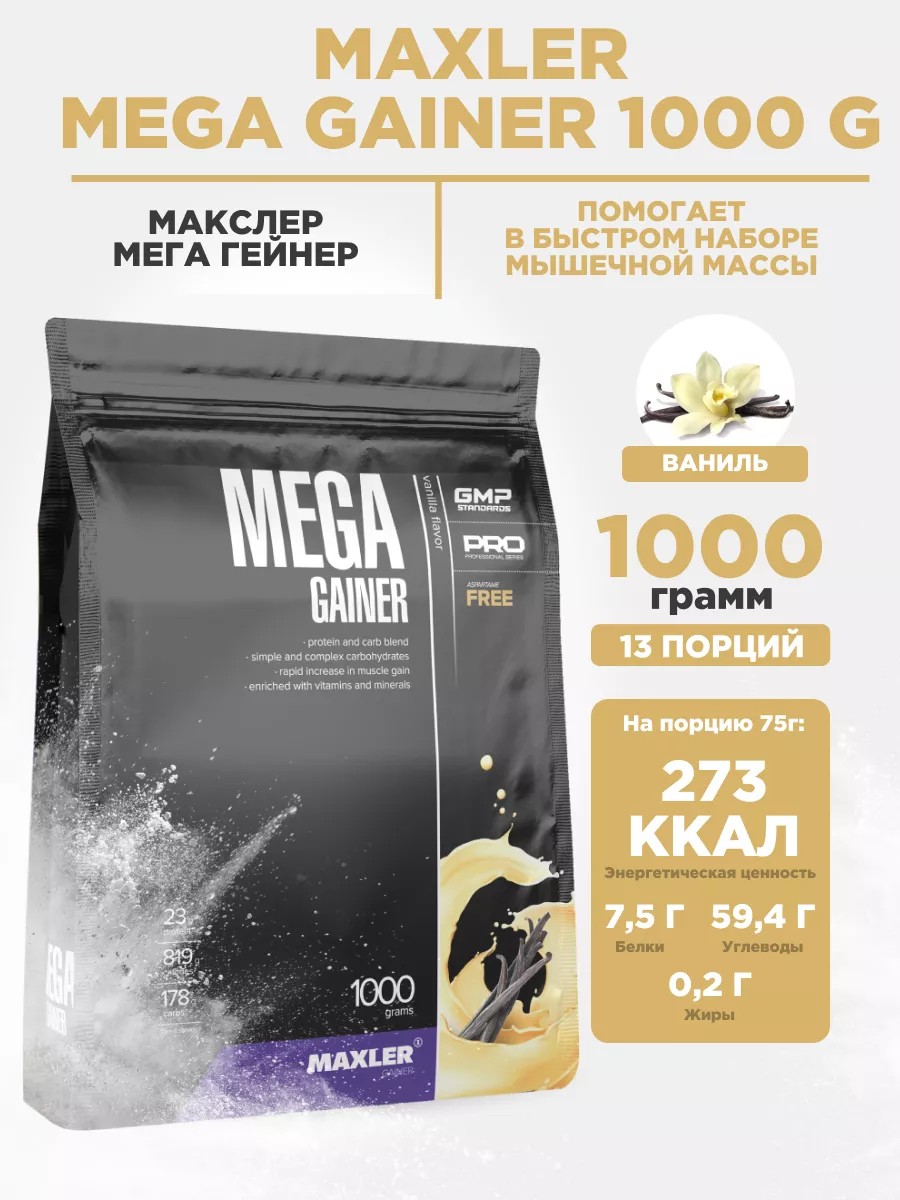 | Комплектация | Maxler Mega Gainer 1000g ванильный с мерной ложкой внутри - 1шт |