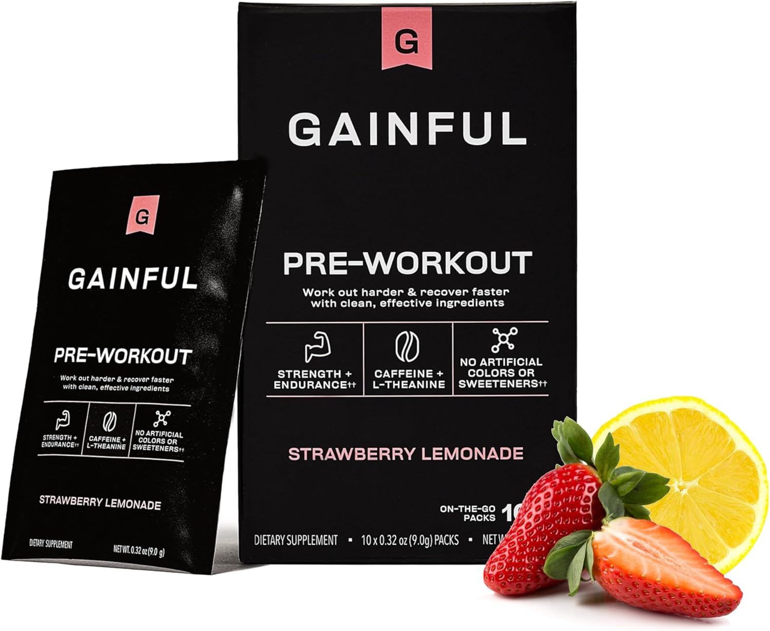Gainful Pre Workout Powder - Strawberry Lemonade - 10 Servings (Caffeinated)