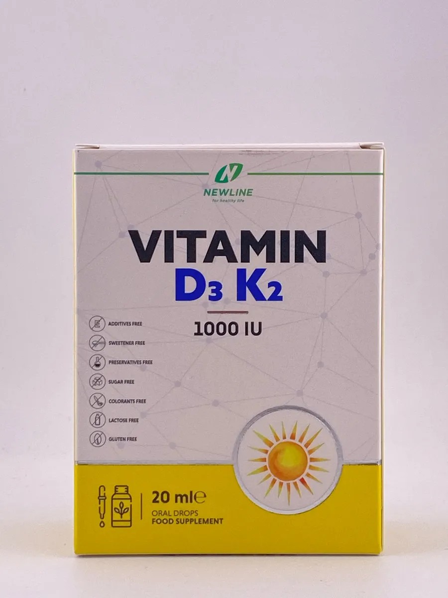 NewLine Vitamin D3 + K2 — это сбалансированный комплекс в жидкой форме, разработанный для поддержки костной системы, иммунитета и сердечно-сосудистого здоровья.