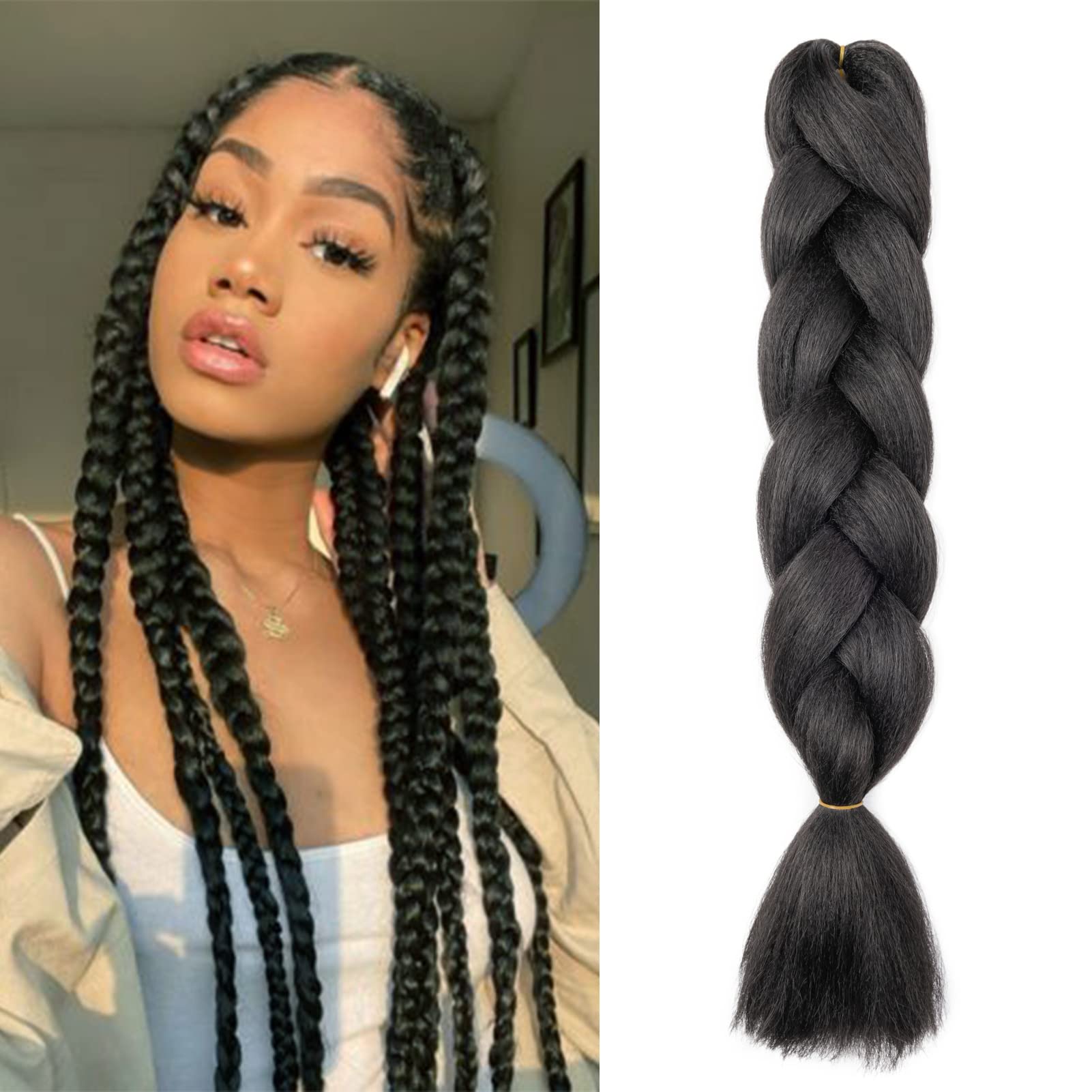 Gairyan jumbo braids extensions braid art hair 1 piece 100g braiding hair hair extensions 60cm ombre synthetic braids afro hair for box crochet braids (natural black) 60 cm (1 piece) natural black