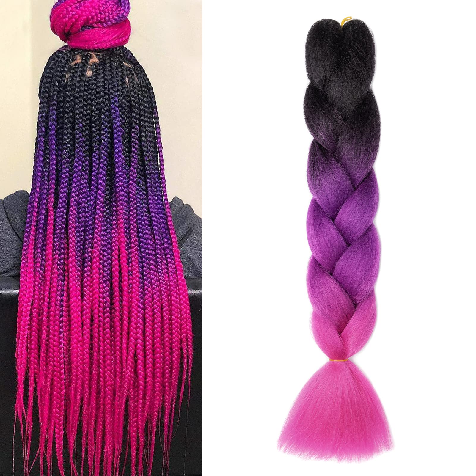 Gairyan jumbo braids extensions braiding art hair 1 piece 100g braiding hair 60cm ombre synthetic braids afro hair for box crochet braids (black & purple & rose red)