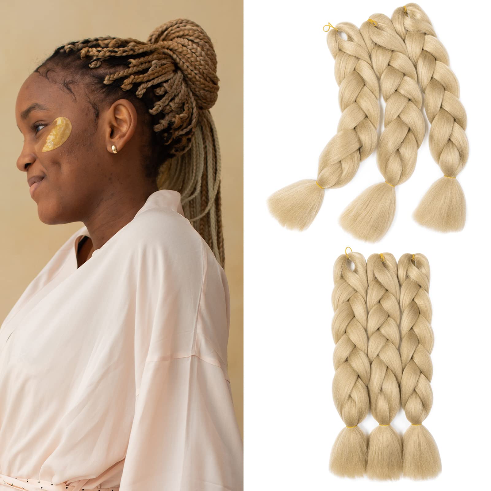 Gairyan Jumbo Braids Extensions Flechten Kunsthaar zum Einflechten Haar 6 Stücke 600g Braiding Hair Haarverlängerungen 60cm Ombre Synthetik Zöpfe Afro Hair für Box Crochet Braids (Natürliche Blondine) 60 cm (6 Stück) Natürliche Blondine