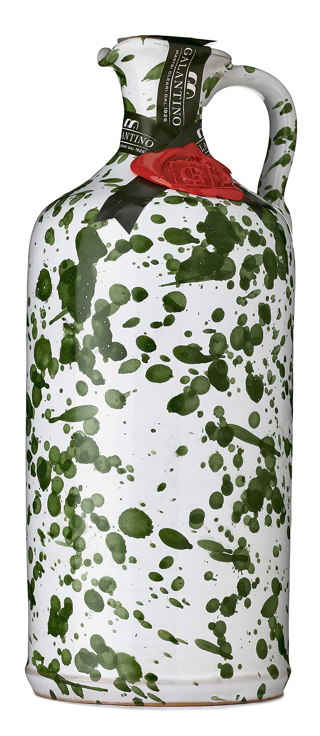 Galantino ceramics are handcrafted and hand-painted by experienced artisans. The ceramic protects the wonderful Galantino extra virgin olive oil, cold-pressed from olives grown in Puglia. INSTRUCTIONS FOR USE Use for raw dressings, salads, stir-fries, and low-temperature cooking. Store in a cool, dry place.