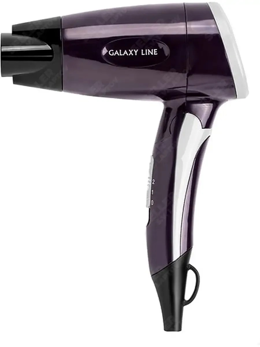The stylish, compact GALAXY LINE GL4338 hair dryer is an essential appliance for home and travel. Its foldable handle allows for compact storage. It takes up minimal space in both your closet and suitcase. It features an optimal power output of 1200 W and 2 airflow speeds: a low airflow for finishing styling, and a high airflow for intensive drying. The included concentrator nozzle prevents airflow dispersion and directs the air stream directly to a specific strand of hair. This speeds drying and makes styling easier. A hanging loop allows for convenient storage in a bathroom or cabinet. Create custom looks while caring for your hair! Be unique with the GALAXY LINE! 2-year warranty. Over 700 service centers. When you purchase a GALAXY LINE hair dryer, you receive a folding comb with a mirror as a GIFT!
