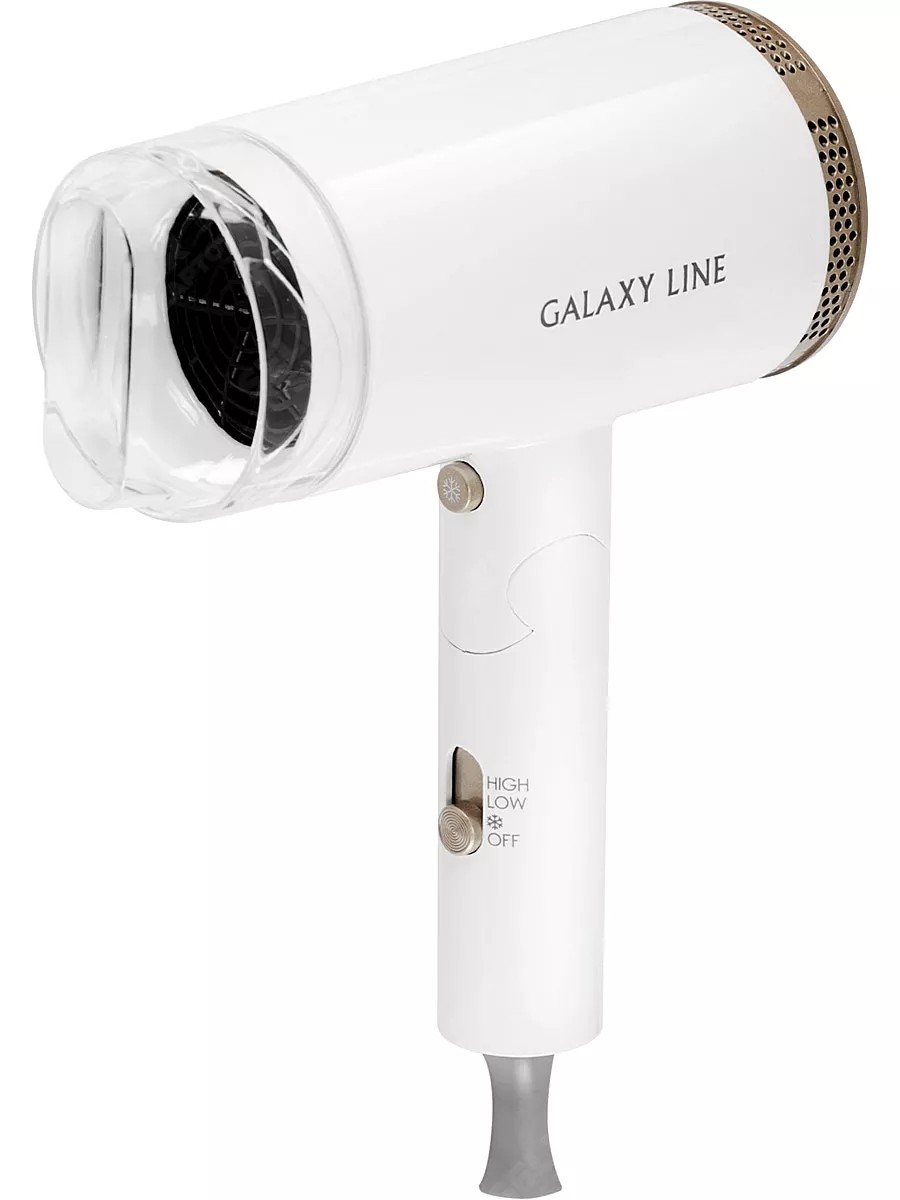 The GALAXY LINE GL4353 hair dryer is a stylish, modern, and convenient device for drying and styling hair. It boasts a powerful 2200W output and two airflow speeds. A low airflow is ideal for finishing your style, while a high airflow is ideal for intensive drying. Motor overheat protection extends the life of the device. A special feature, the Cool Shot function, is designed to perfectly set your hair after drying by cooling it. An additional advantage of this model is the special crevice nozzle for quickly drying large areas of hair. The foldable handle allows for compact storage. It takes up minimal space in both your cabinet and suitcase. Its attractive color and modern ergonomics will impress. The stylish GALAXY LINE GL4353 hair dryer will become an indispensable hair care device. 2-year warranty. Over 700 service centers. When you purchase a GALAXY LINE hair dryer, you get a folding comb with a mirror as a GIFT!