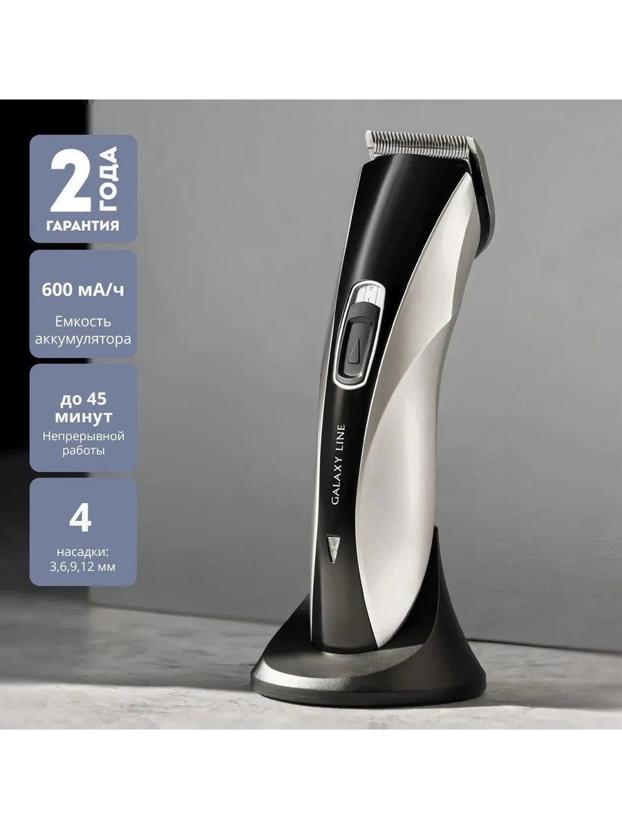 Лезвия из высококачественной нерж. стали. 4 насадки-расчески (3,6,9,12 мм). Индикатор заряда и работы. Филировочный гребень. Время непрерывной работы 45мин. Эргономичный дизайн.