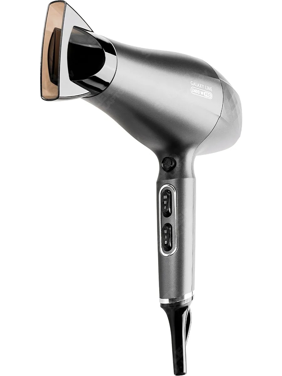 The modern and functional GALAXY LINE GL4368 hair dryer will help you dry and style your hair gently. With 2400 W of power, a strong airflow dries hair faster, saving time. The device is safe to use and does not damage hair. Thanks to 3 temperature and 2 speed modes, you can set the settings suitable for a specific hair type and condition. A separate button turns on cold air during hot air drying and is designed to perfectly fix the hairstyle after drying by cooling the styled hair. The concentrator nozzle directs the air flow to a strand of hair, allowing it to dry much faster, which significantly speeds up styling time. Overheat protection. 2 airflow speeds. Cool air function. Protective grill. Concentrator nozzle. Temperature settings: 3. Hanging loop. Nozzles: Concentrator nozzle. 1.75 m power cord. Low noise level. 2-year warranty. Over 700 service centers. When you purchase a GALAXY LINE hair dryer, you get a folding comb with a mirror as a GIFT!
