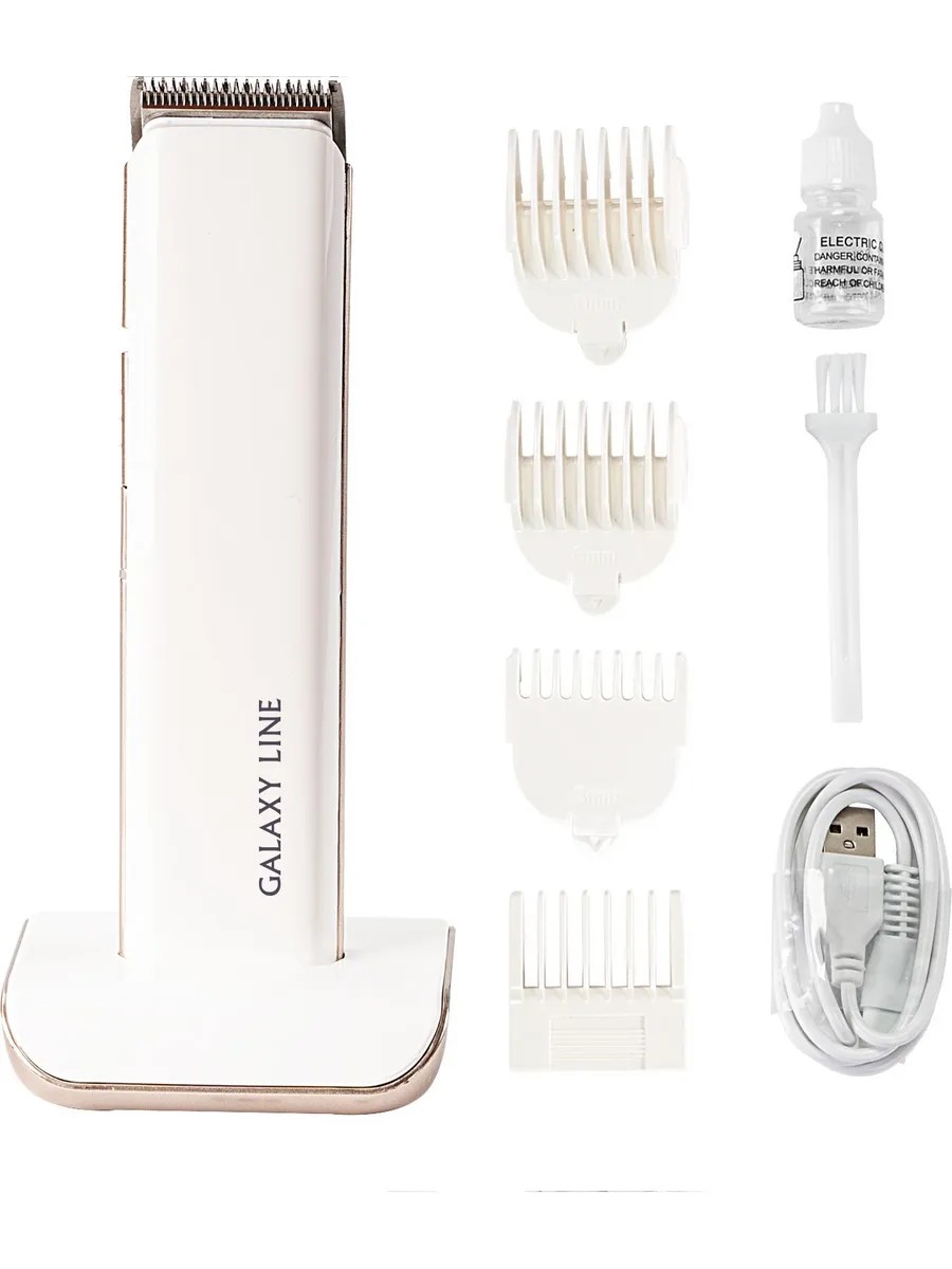 Машинка для стрижки Galaxy Line GL 4160 белый, насадок в комплекте 4шт, питание от аккумулятора (ГЛ4160ЛБЕЛ)