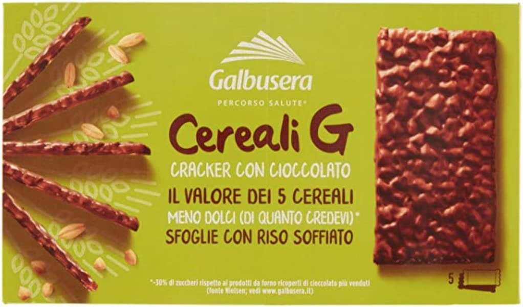 Galbusera Lot de 3 craquelins céréaliers G au riz soufflé avec collation au chocolat 150 g Le paquet contient 5 portions de 2 crackers