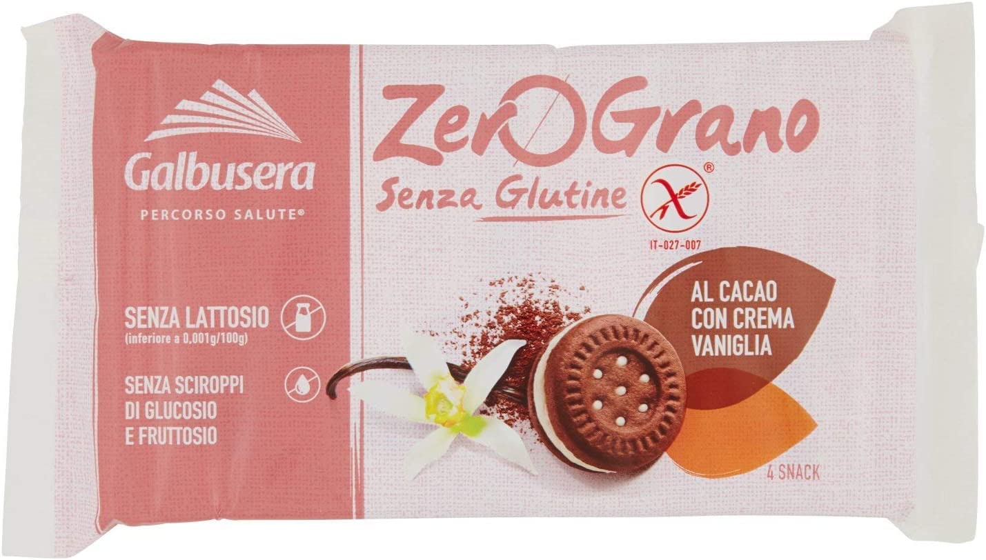 Galbusera Zero Grano Frollini Cacao avec crème vanille 160 g sans gluten 4 collations