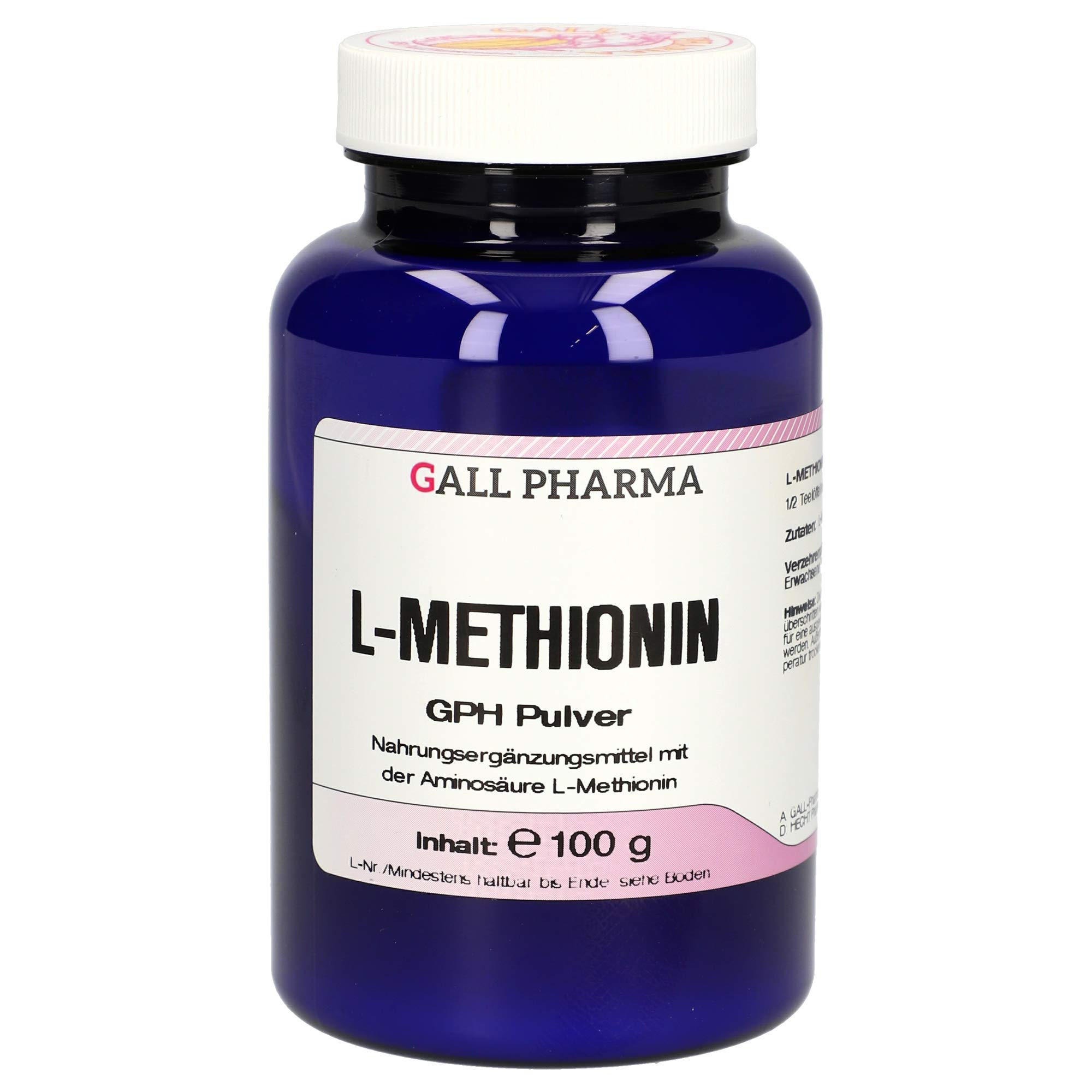 Markenartikel von Gall Pharma. Glutenfrei, Lactosefrei, Hefefrei. L-Methionin GPH Pulver enthält 100 g L-Methionin.