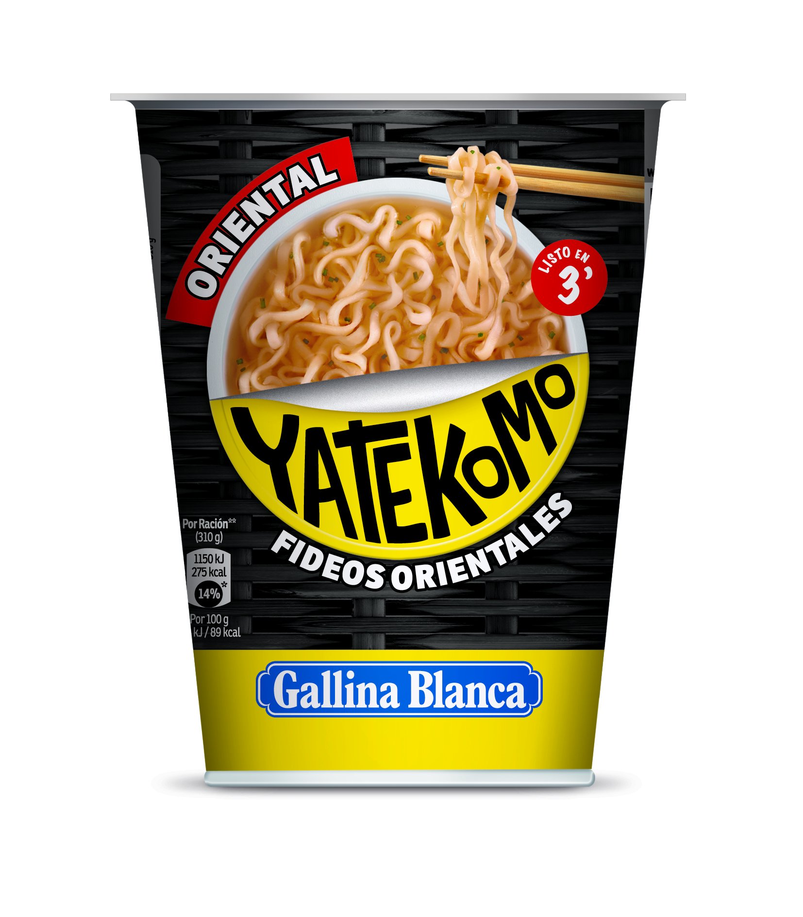 Oriental Fidees: Oriental Yatekomo. Ready in 3 minutes. Enjoy the true taste of the Orient and its culinary arts with the new noodles from Gallina Blanca. Feel the Orient. Other characteristics: Contents: 310 g Sugar content (per serving): 2.2 g Carbohydrate content (per 100 g): 11 g Dietary fiber content (per 100 g): 0.7 g Fiber content (per serving): 2.2 g Saturated fat content (per 100 g): 2.1 g Saturated fat content (per serving): 6.4 g Protein content (per 100 g): 1.8 g Salt content (per 100 g): 0.93 g Salt content (per serving): 2.9 g Daily energy value (per serving): 14 Cooking time: 3 min Sugar content (per 100 g): 0.7 g Carbohydrate content (per serving): 35 g Fat content (per 100g): 3.9g Fat content (per serving): 12g Protein content (per serving): 5.6g Ingredients: Spinach, Soy, Sesame, Palm Oil Number of servings per pack: 1 Packaging type: Cardboard box Energy value (per 100g): 368kJ Energy value (per serving): 275kJ Energy value (per serving): 1150kJ Serving size: 310g INGREDIENTS Oriental Fidees (89 ): Broge flour, palm oil, modified starch, salt, flavorings (sodium carbonate, potassium carbonate). Aderezo (11 ): Salt, flavor enhancers (E621, E635), potato starch, maltodextrin, sugar, flavorings (containing egg), lactose, onion oil, palm oil, garlic, garlic, yeast extract, chili, chicken extract, 1 , acidity regulator (citritritritritritritriacida), coriander, ginger, anise, color (turmeric). May contain sliced meat, fish, milk, pepper, mustard, and sesame. COOKING INSTRUCTIONS Cook the noodles for 3 minutes. SAFETY WARNING Store in a cool, dry place away from light. See moreGallina Blanca Yatekomo Oriental - Fideo oriental, 61 g - [Pack de 8]DESCRIPTION DU PRODUIT DESCRIPTION DU PRODUIT Fidees orientales : Yatekomo oriental. Prêt en 3'. Profitez du véritable goût d'Orient et de ses arts culinaires avec les nouveaux noodles de Gallina Blanca. Sentez-vous orientale. Autres caractéristiques : Contenu : 310 g Teneur en sucre (par portion) : 2,2 Teneur en glucides (pour 100 g) : 11 g Teneur en fibre diététique (pour 100 g) : 0,7 g Teneur en fibre alimentaire (par portion) : 2,2 g Teneur en graisse saturée (pour 100 g) : 2,1 g Teneur en graisse saturée (par portion) : 6,4 Teneur en protéines (pour 100 g) : 1,8 g Teneur en sel (pour 100 g) : 0,93 g Teneur en sel (par portion) : 2,9 Teneur de la valeur énergétique quotidienne (par portion) : 14 Temps de cuisson : 3 min Teneur en sucre (100 g) : 0,7 g Teneur en glucides (par portion) : 35 Teneur en graisse (pour 100 g) : 3,9 g Teneur en graisse (par portion) : 12 Teneur en protéine (par portion) : 5,6 Ingrédients : Spinach, Soy, Sesame, Palm Oil Nombre de portions par paquet : 1 Type d'emballage: boîte en carton Valeur énergétique (pour 100 g) : 368 kJ Valeur énergétique (par portion) : 275 Valeur énergétique (par portion) : 1150 Volume par portion : 310 g INGRÉDIENTS Fidees orientales (89 ) : farine de broge, huile de palme, amidon modifié, sel, essences (carbone de sodium, carbone de potasie). Aderezo (11 ) : sel, stimulants du goût (E621, E635), fécule de pomme de terre, maltodextrine, sucre, arômes (contenant des œuf), lactose, oignon d'huile, huile de palme, ail froid, aile, extrait de levure, chili, extrait de poulet, 1 , Correcteur d'acidité (acide citritritritritritritritri). ), Coriandre, Gingembre, Anis, Colorant (Curcumina). Peut contenir des tranches de chariots, poisson, lait, épium, moutarde et siesamo. MODE D'EMPLOI Faire cuire les noodles pendant 3 minutes AVERTISSEMENT DE SÉCURITÉ Conserver dans un endroit frais et sec, à l'abri de la lumière Voir plus