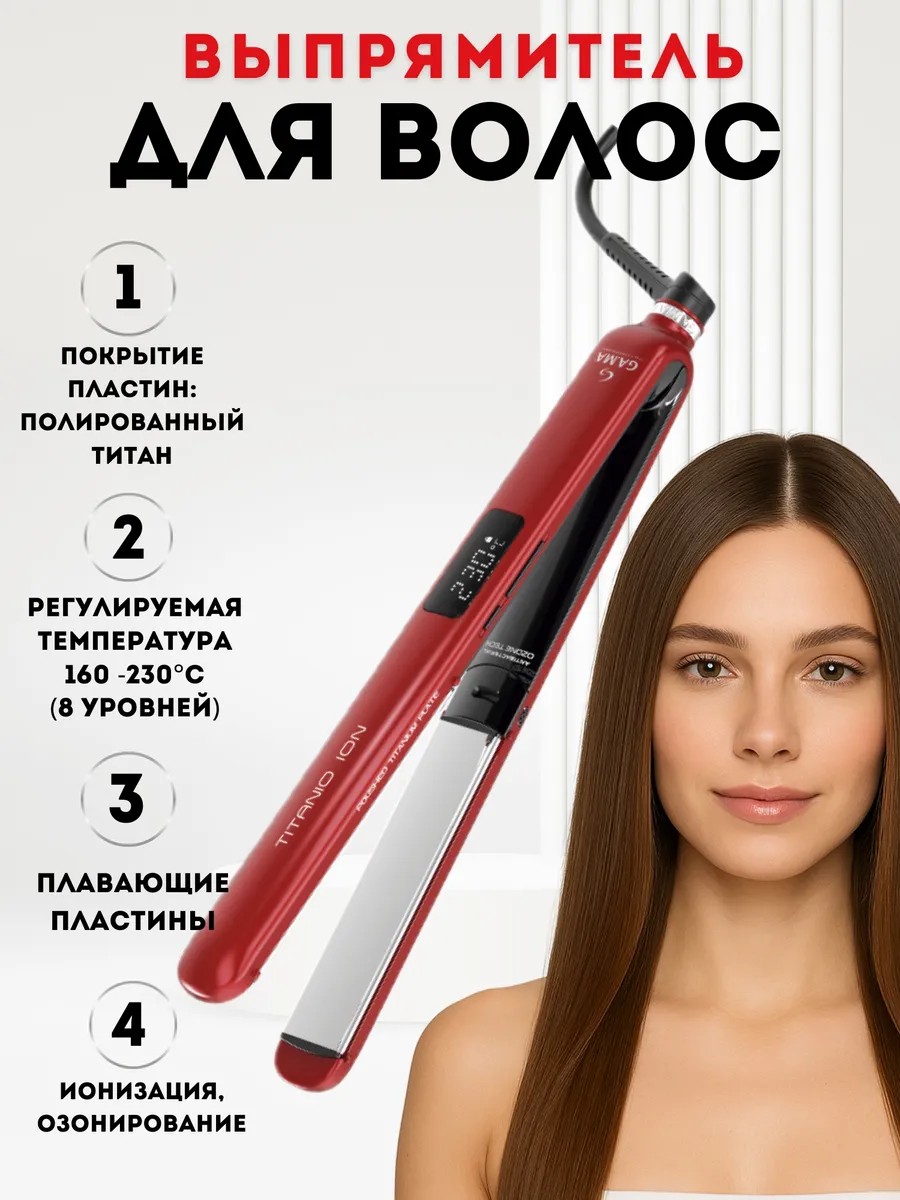 Выпрямитель RED DIGITAL TITANIO 4D оснащен большими плавающими 3х12 см полированными нагревательными пластинами с титановым покрытием, материала, который равномерно распределяет тепло по волосам, кроме того, ограничивая повреждения из-за перепадов температуры благодаря защитному действию, оказываемому на волокна волос. Титан является отличным проводником тепла, которое остается постоянным на каждом этапе укладки. Выпрямитель оснащен мощными генераторами озона и ионов. Тройное излучение озона обеспечивает глубокое очищение кожи головы, а тройной выброс ионов борется с наэлектризованностью волос и дарит им неповторимый блеск. Округлый дизайн корпуса позволяет не только выпрямлять, но и завивать волосы. Идеально подходит даже для самых густых и объемных волос, так как имеет регулировку температуры от 160 до 230 °C . Встроенная функция автоматического отключения имеет важное значение для безопасности, выпрямитель выключается через 60 минут бездействия. Вращающийся на 360 градусов длинный шнур 2,5 метра позволяет спокойно использовать его на больших расстояниях от розетки. Вес прибора всего 240 грамм.