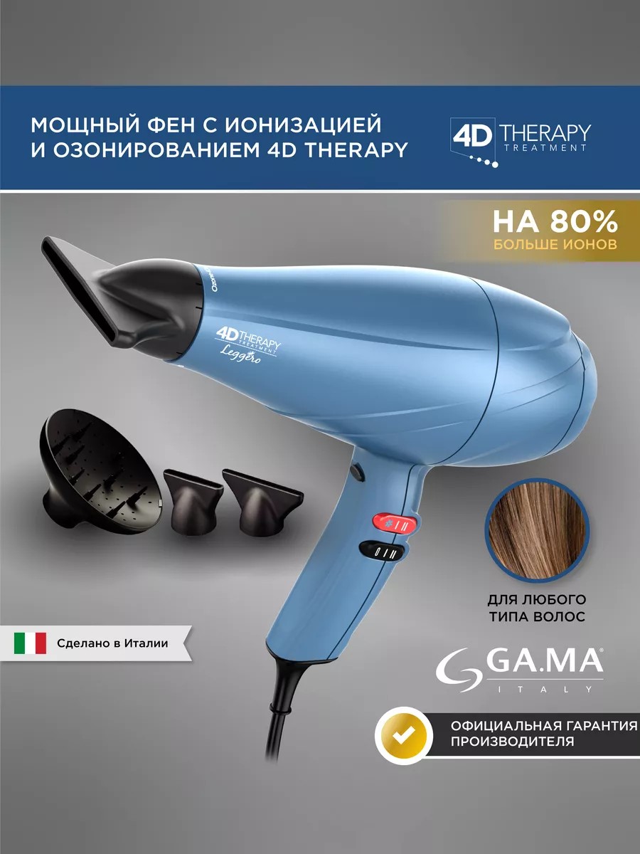 Фен для волос с насадками LEGGERO OZONE ION 4D THERAPY