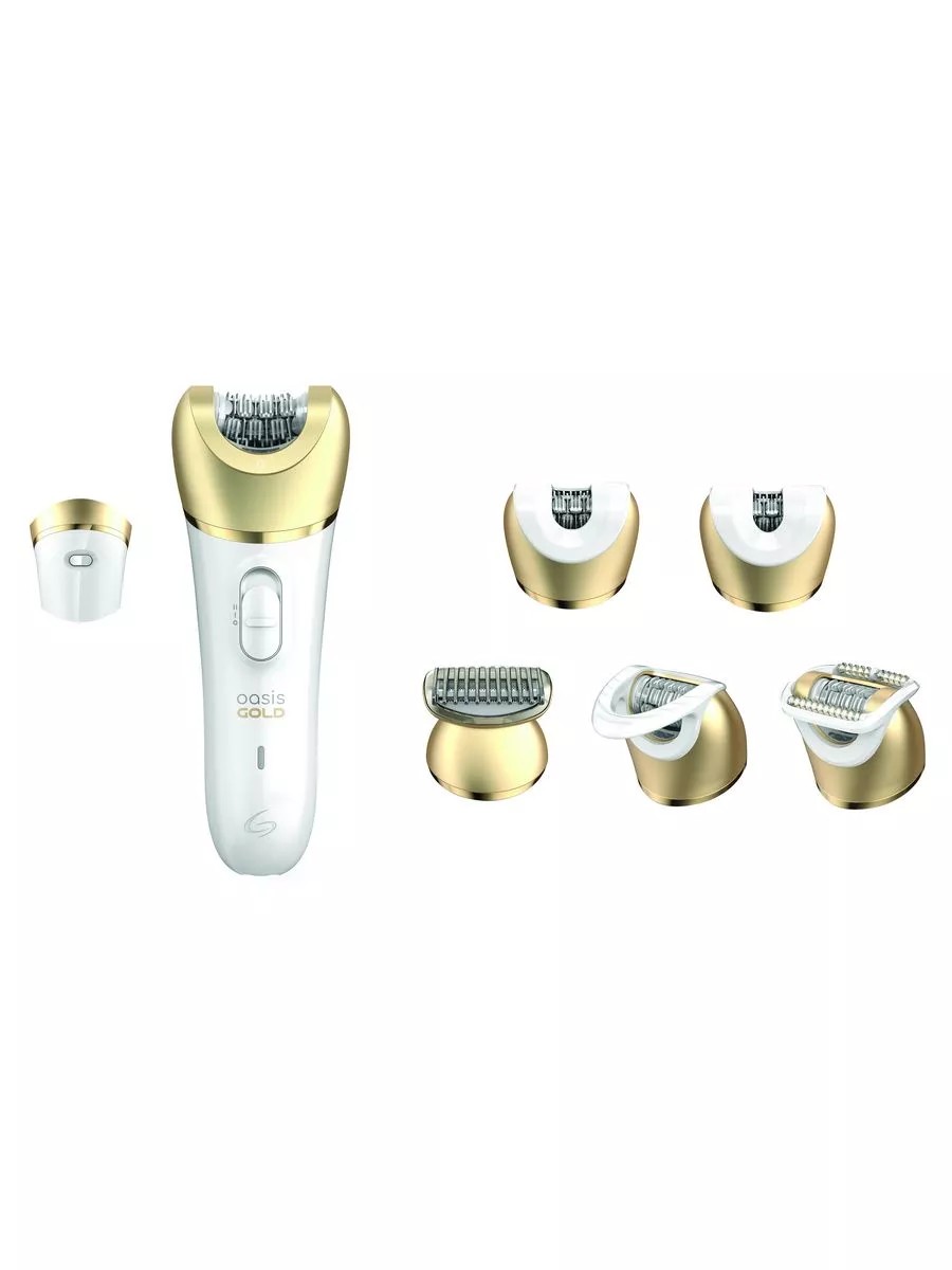 Эпилятор OASIS GOLD с 2 скоростями работы обеспечивает эффективное и бережное удаление волос для идеально гладкой кожи на срок до 4 недель. Ручка эпилятора имеет эргономичную форму, что позволяет полностью контролировать все этапы удаления волос. Беспроводной режим работы до 60 минут дает возможность проводить эпиляцию в удобном месте и не зависеть от расположения розеток и длины шнура. В комплекте 6 насадок, включая широкую эпилирующую головку для ног. Бритвенная насадка используется для щадящего удаления волос на различных участках тела, например, на ногах и руках. Для более нежных зон в комплект входят насадки для чувствительных зон, например, для линии бикини и лица, отличающиеся более узкой бреющей головкой. Они уменьшают площадь, которая подлежит эпиляции. Таким образом можно удалять нежелательные волоски точечно и с меньшим раздражением кожи. Насадка для оптимального контакта с кожей слегка натягивают кожу, чтобы помочь эпилятору захватить даже самые тонкие и короткие волоски, обеспечивая тем самым более комфортное и тщательное удаление волос. Массажная насадка помогает уменьшить болевые ощущения и сделать эпиляцию более мягкой. Все головки съемные и их легко очищать. Прибор заряжается через USB кабель. Все эпилятора всего 150 грамм. Для удобства хранения в комплекте есть дорожный чехол.