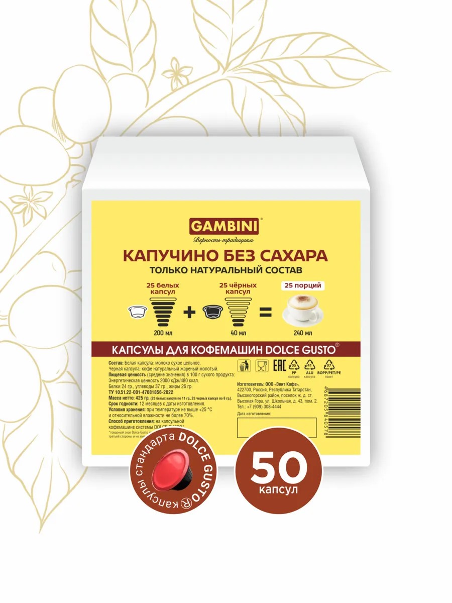 Gambini Кофе в капсулах Капучино для кофемашин Dolce Gusto 50шт