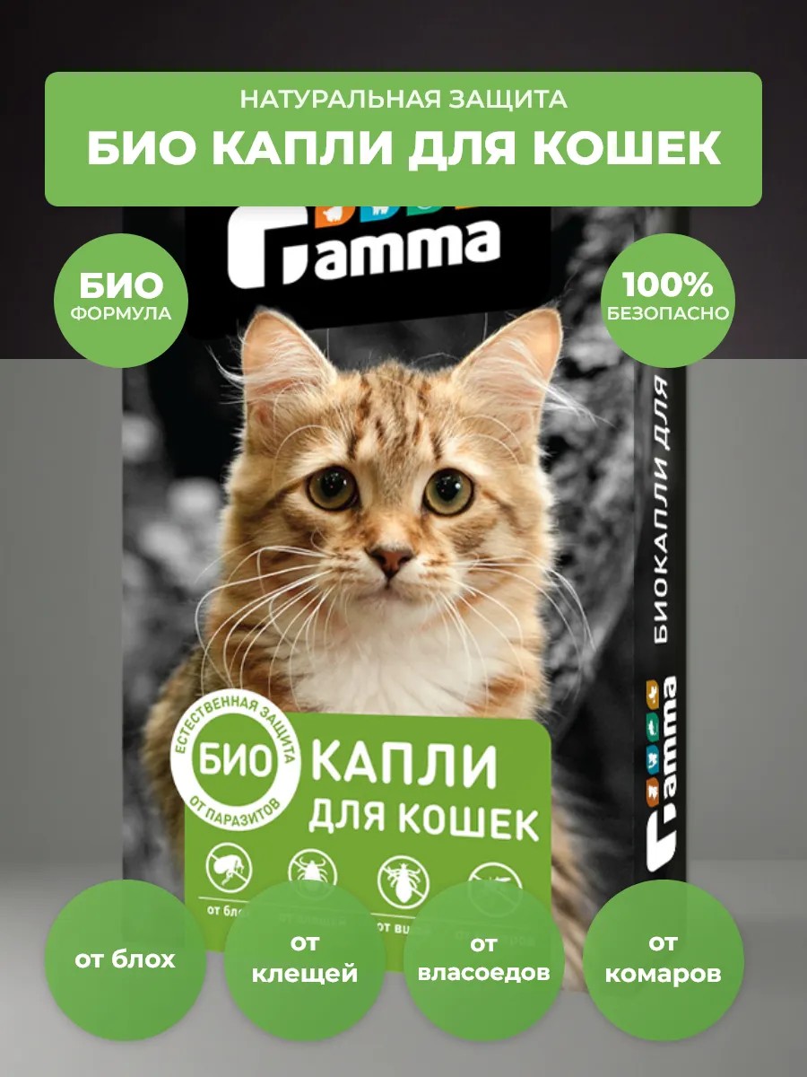 GAMMA БИОКАПЛИ на холку для кошек от внешних паразитов