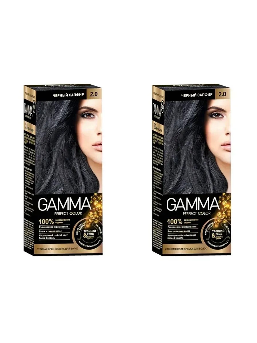 Gamma Крем-краска для волос Perfect Color тон 2.0 Черный сапфир, 50 мл, 2 упаковки в комплекте. Стойкая крем-краска для волос Gamma предназначена для окрашивания волос в натуральные и яркие оттенки. Формула содержит природные компоненты, которые питают, смягчают и предотвращают сухость волос.