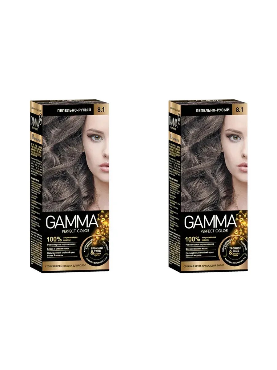 Gamma Крем-краска для волос Perfect Color тон 8.1 Пепельно-русый, 50 мл, 2 упаковки в комплекте. Стойкая крем-краска для волос Gamma предназначена для окрашивания волос в натуральные и яркие оттенки. Формула содержит природные компоненты, которые питают, смягчают и предотвращают сухость волос.
