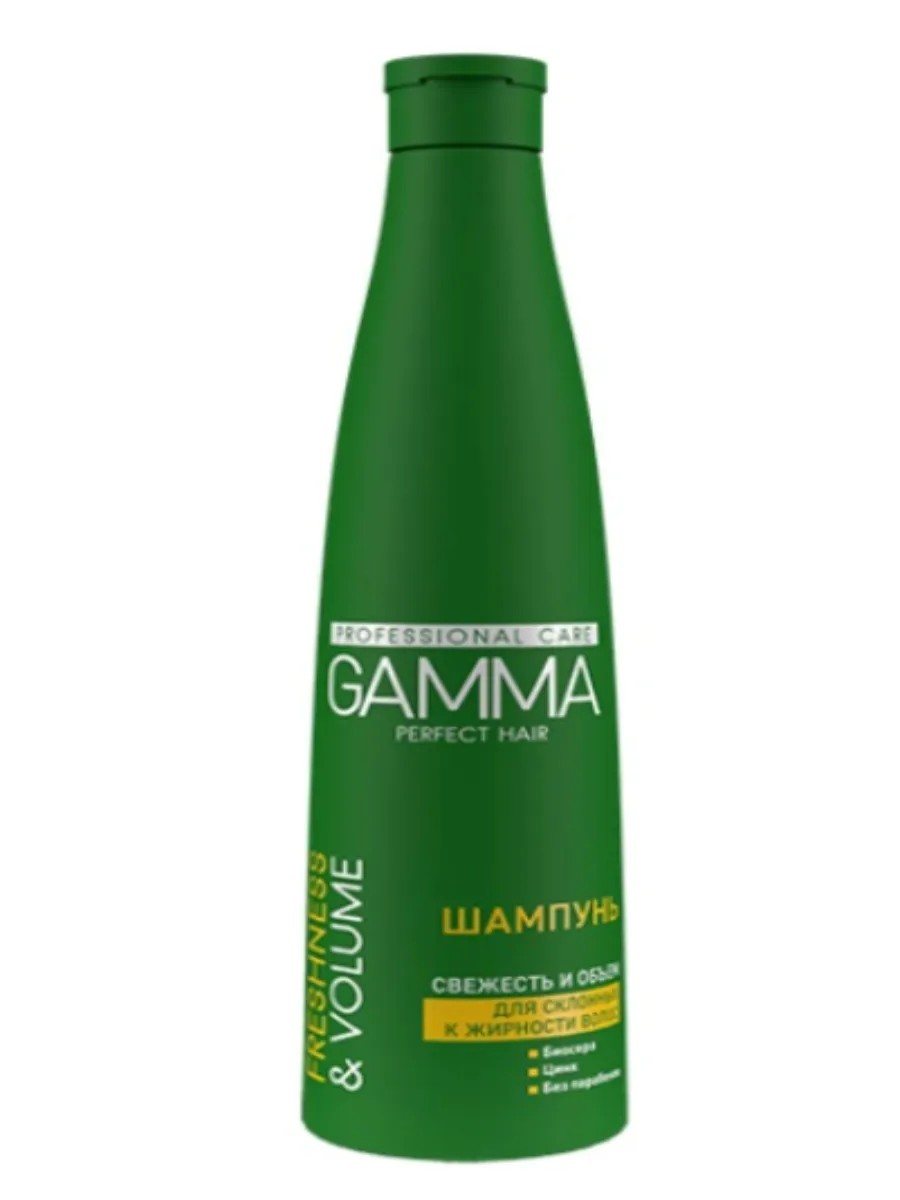 Шампунь для волос Свежесть 350 мл. Специальная формула шампуня GAMMA PERFECT HAIR для волос, склонных к жирности, бережно очищает волосы и продлевает их свежесть.