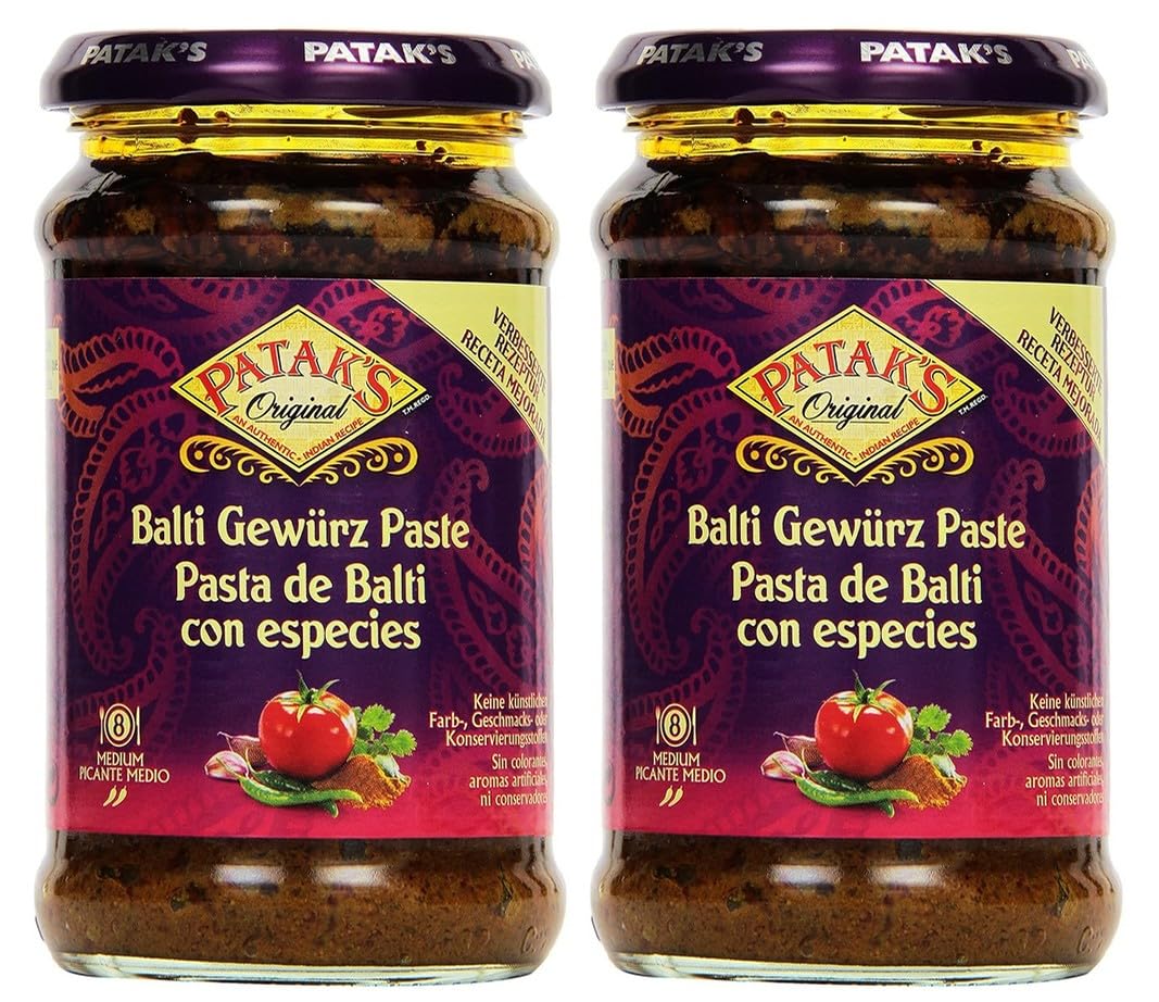 Patak Balti Paste is an authentic blend of cumin, paprika, turmeric, coriander, spices, and fennel. It simplifies and speeds up the cooking process. Like any other classic Indian spice blend, it is rich, aromatic, and spicy. Patak Balti Paste can be used in a variety of dishes that call for Balti paste. It adds real flavor to sauces, gravies, and spreads. When you don't have time to prepare the paste each time you want to use it, this paste is very convenient. So, keep Patak Balti Paste ready for the recipe that calls for Balti paste. You will save time in the kitchen this way. Create authentic Balti dishes with this specially blended Balti paste to give you that delicious "Balti" flavor. Cook authentic, restaurant-style Indian dishes using Patak's ready-to-use Balti Paste. Features: Delicious taste and rich flavor Used for marinating meat and vegetables, and for making sauces and casseroles Adds aroma and flavor to your food Enhances the flavors of meals Pairs well with any meat, seafood, and even vegetables Blend of aromatic spices, ginger, and tamarind The paste has a thick texture Can be used in the preparation of Indian dishesPatak Pâte Balti 295 g (lot de 2) - Ajoute du goût et de la saveur aux repas - Pâte prête à consommer simplifie et accélère le processus de cuissonDESCRIPTION DU PRODUIT La pâte Balti Patak est un mélange authentique de cumin, paprika, curcuma, coriandre, épices, fenouil. Il simplifie et accélère le processus de cuisson. Comme toute autre combinaison d'épices indiennes régulières, elle est riche, aromatique et épicée. La pâte Balti Patak's peut être utilisée dans une variété de plats qui appellent la pâte Balti. Il ajoute une vraie saveur aux sauces, sauces et pâtes à tartiner. Lorsque vous n'avez pas le temps de préparer la pâte chaque fois que vous voulez les utiliser, cette pâte est très pratique. Ainsi, gardez la pâte Balti Patak prête pour la recette qui appelle la pâte Balti. Vous gagnerez du temps dans la cuisine de cette façon. Réalisez des plats Balti authentiques avec cette pâte Balti spécialement mélangée pour vous donner cette délicieuse saveur « balti ». Cuisinez des plats indiens authentiques de style restaurant en utilisant les pâtes Balti prêtes à l'emploi Patak. Caractéristiques : Goût délicieux et saveur riche Utilisé pour mariner la viande et les légumes et pour faire des sauces et des casseroles Ajoute de l'arôme et de la saveur à vos aliments Améliore les saveurs des repas Se marie bien avec n'importe quelle viande, fruits de mer et même légumes Mélange d'épices aromatiques, de gingembre et de tamarin La pâte est épaisse en texture Peut être utilisé dans la préparation de plats indiens