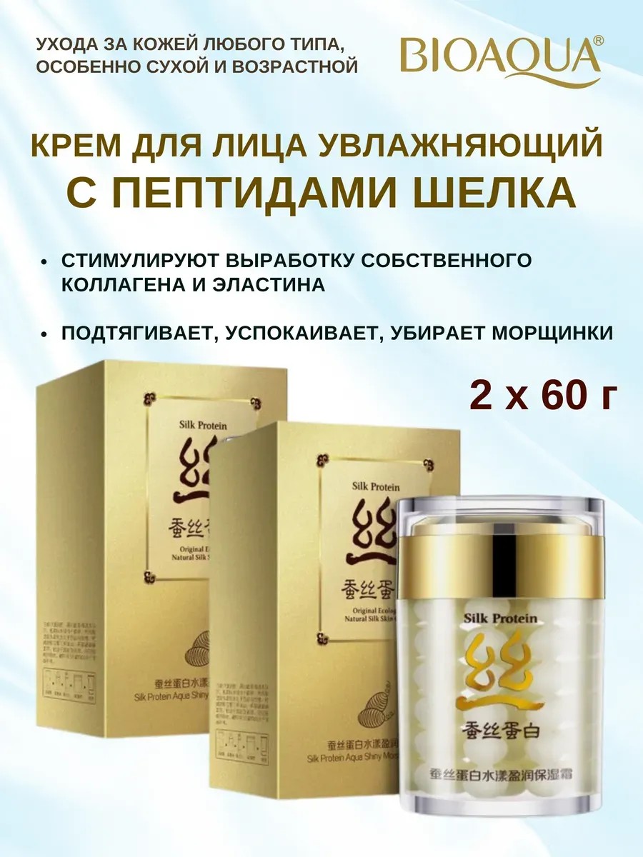 Gangga Крем с пептидами шелка Биоаква, Silk protein Bioaqua, 2х60г