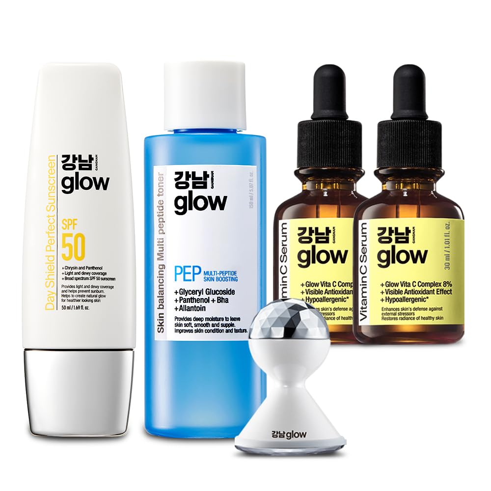 Reveal Your Glow with Multi-Peptide Power: Experience the remarkable effects of our toner, enriched with advanced 8 multi peptides and BHA (salicylic acid), addressing your skin's every need from soothing to hydrating, exfoliating, and enhancing your natural glow. Unlock the Magic of a 3-Day Skin Transformation : Experience radiant skin with our high-concentration Vitamin C formula, enriched with hyaluronic acid for ultimate moisturization. Light Silky Texture: Lightweight, fast-absorbing texture glides smoothly onto the skin, leaving a healthy glow. Non-greasy, sheer formula doesn't leave any residue. ? Sun Protection and Skin Tone-Up: Experience powerful sun protection (SPF50 Broad Spectrum) combined with a natural tone correction formula, providing a dewy base for glowing skin all day. ?The Secret to Natural Radiance with GANGNAM Glow : Harnessing advanced technology, our skincare products promote healthy, glowing skin. Dedicatedly formulated for sensitive skin, our formulas come with clinically proven benefits.