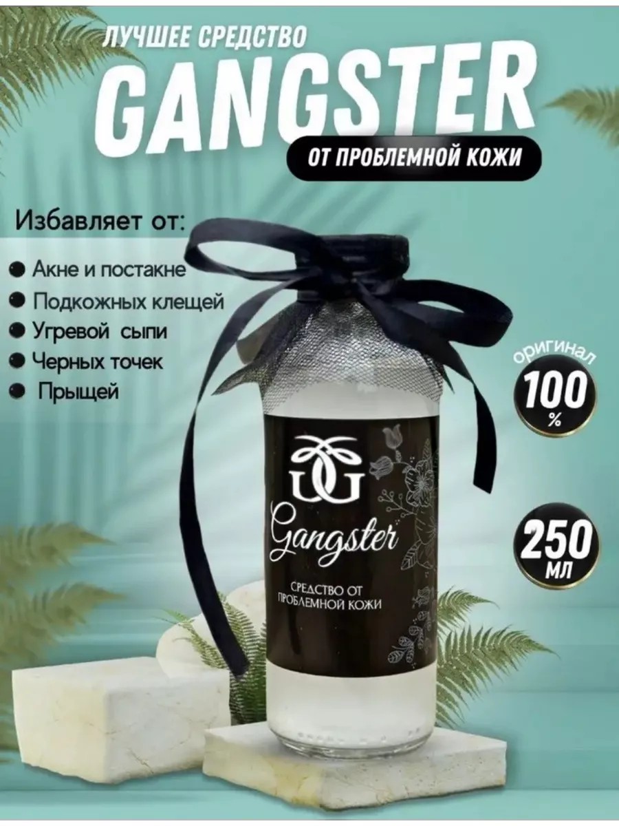 Gangster Acne Toner eliminates many problems, improving not only the appearance of problem skin but also eliminating the source of inflammation and skin conditions. This acne toner, an antibacterial treatment for acne and blackheads, is formulated according to a dermatologist's recipe and contains no harmful ingredients. Gangster Lotion has therapeutic properties and is excellent for combating skin imperfections. Like the acne serum, the toner is designed to eliminate acne, blackheads, and breakouts. It is used to eliminate subcutaneous mites, closed comedones, age spots and freckles, warts and papillomas, and goosebumps on the neck and décolleté, arms, back, or buttocks. Glycolic acid deeply cleanses and tightens pores, while lactic acid prevents the formation of blackheads and breakouts. Zinc dries out inflammation. White clay heals scars and post-acne marks. Organic blue clay moisturizes, smoothes wrinkles, and lightens pigmentation. Suitable for all skin types, including dry and sensitive, combination, and normal skin with early stages of rosacea and couperose. It reduces redness and evens out skin tone, eliminates sebum from the T-zone (forehead, chin), and dryness from the cheeks. Despite its powerful anti-inflammatory properties, the toner doesn't dry out the skin. Gangster cosmetics can be used as a serum or toner before peels or mechanical cleansing, easing the breakouts of painful breakouts in teenagers, boys and girls, and men and women of all ages. After just a few uses, skin will become smooth, radiant, and soft. Within a week, skin will clear up, pores will tighten, some purulent lesions will disappear, and scars will become virtually invisible. Within a month, you'll forget what your skin looked like before using it. Directions: Shake the bottle and wipe with a cotton pad twice daily, morning and evening. Do not rinse. Makeup can be applied after 20-30 minutes.