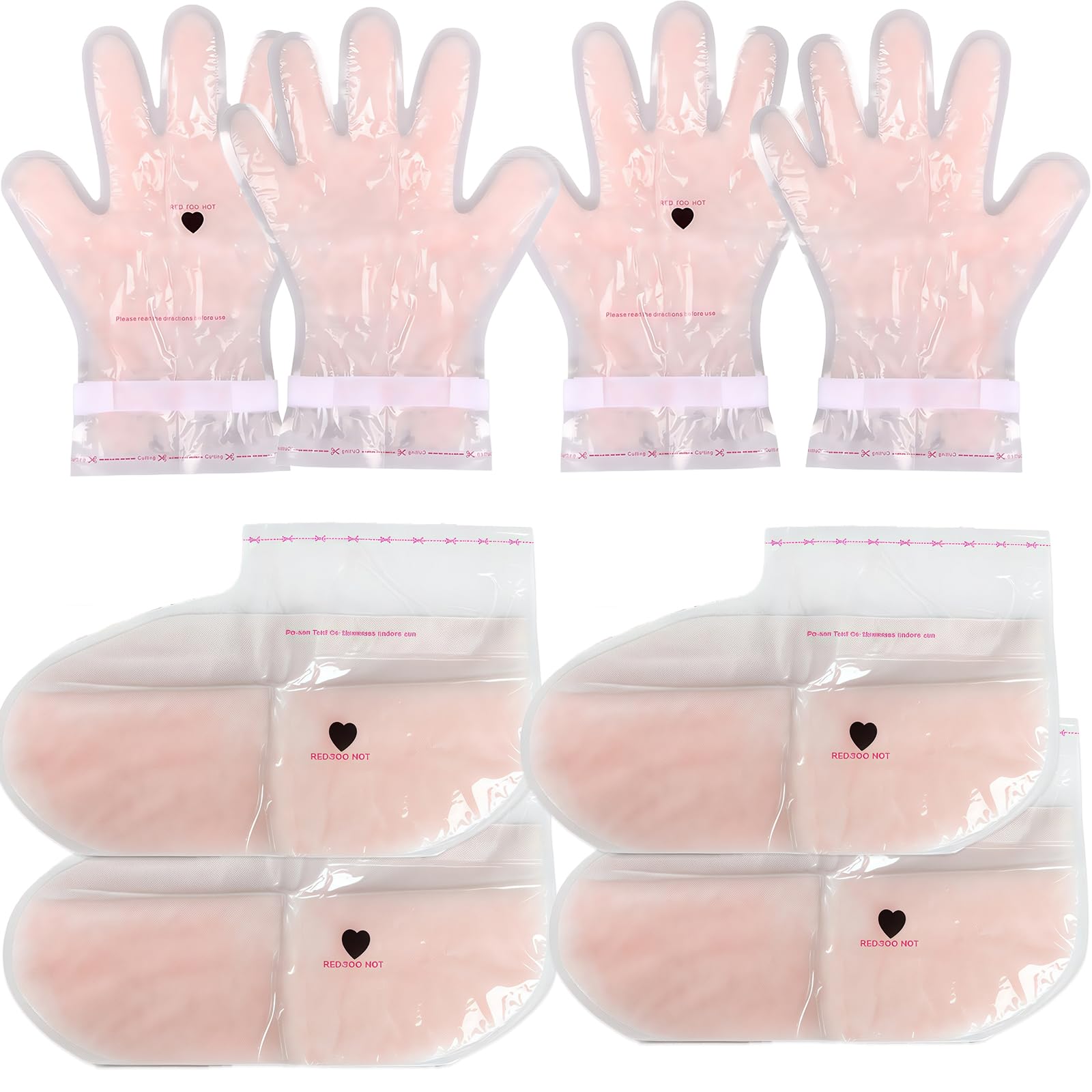 Versatile Uses: This set of paraffin gloves and foot sleeves is suitable for beauty salons or spas, and you can also use them at home for hand or foot care. Convenient to Use: The paraffin gloves are water-soluble and do not require a special wax melter. Simply place them in hot water or microwave them for quick heating, making them very convenient to use. Enhances Absorption: The inner layer of the paraffin sleeves is made from safe, high-temperature-resistant materials, ensuring that the paraffin wax is not affected by degradation and facilitates skin absorption. Skin Repair: The paraffin gloves are ideal for skin repair and can also relieve joint and muscle pain. Improves skin condition: Paraffin gloves and sleeves help to soften and reduce rough layers of keratin and cracked skin, thus improving overall skin health.Utilisations polyvalentes : l'ensemble de gants et manchons de pied en paraffine est adapté pour les salons de beauté ou les spas, et vous pouvez également les utiliser à la maison pour les soins de beauté des mains ou des pieds. Pratique à utiliser : les gants en paraffine sont solubles dans l'eau et ne nécessitent pas de fondeur de cire spécial. Il suffit de les placer dans de l'eau chaude ou au micro-ondes pour un chauffage rapide, ce qui les rend très pratiques à utiliser. Améliore l'absorption : la couche intérieure des manchons de paraffine est fabriquée à partir de matériaux sûrs et résistants aux hautes températures, assurant que la cire de paraffine ne soit pas affectée par la dégradation et facilite l'absorption cutanée. Réparation de la peau : les gants en paraffine sont idéaux pour la réparation de la peau et peuvent également soulager les douleurs articulaires et musculaires. Améliore l'état de la peau : les gants et les manchons de paraffine aident à adoucir et réduire les couches rugueuses de kératine et la peau craquelée, améliorant ainsi la santé générale de la peau.Gants de traitement à la paraffine, 2 paires de gants d'épilation à la paraffine et 2 paires de couvre-pieds en cire de (Rosé)