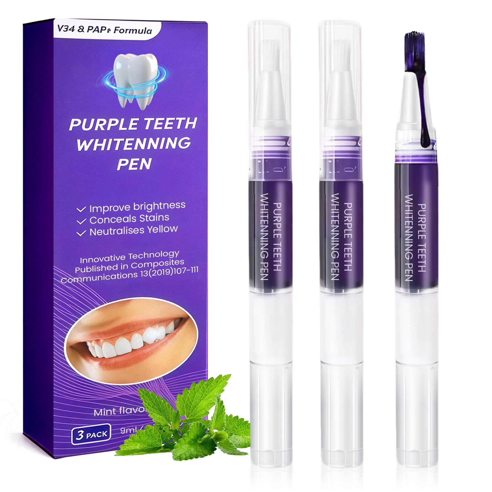3 pieces teeth whitening stick, purple gel for whiter teeth, removes stains caused by coffee, tea and smoking, quick and easy to use, mint INSTRUCTIONS FOR USE Apply the gel directly to your teeth to restore your natural tooth color. Use the pen carefully and make sure that the gel does not get into the mouth or on the tongue. SAFETY WARNING May cause temporary sensitivity or irritation of teeth and gums. Avoid contact with eyes and mouth. Not suitable for children under 18 years. Perform a patch test before use. In case of intolerance or side effects, stop and consult a doctor. See moreWith refreshing mint for a pleasantly fresh feeling. Gentle formula that does not damage tooth enamel and is safe to use. The swivel design allows easy and clean use. Simply apply to teeth - perfect for travel and on the go. Each pen is reusable. The 3-piece set is ideal for long-term dental care and offers excellent value for money. Gently dissolves stubborn stains caused by coffee, tea and smoking and restores natural tooth color while freshening breath. Effectively improves yellowish teeth and makes your smile appear brighter and more radiant for a confident appearance.3 stuks tandenbleekstift, paarse gel voor wittere tanden, verwijdert verkleuringen door koffie, thee en roken, snel en eenvoudig te gebruiken, mint 3 stuks tandenbleekstift, paarse gel voor wittere tanden, verwijdert verkleuringen door koffie, thee en roken, snel en eenvoudig te gebruiken, mint GEBRUIKSAANWIJZING Breng de gel direct op je tanden aan om je natuurlijke tandkleur te herstellen. Gebruik de pen voorzichtig en zorg ervoor dat de gel niet in de mond of op de tong komt. VEILIGHEIDSWAARSCHUWING Kan tijdelijke gevoeligheid of irritatie van tanden en tandvlees veroorzaken. Vermijd contact met ogen en mond. Niet geschikt voor kinderen onder de 18 jaar. Voor gebruik een patch-test uitvoeren. Stop bij intolerantie of bijwerkingen en raadpleeg een arts. Meer bekijkenMet verfrissende munt voor een aangenaam fris gevoel. Zachte formule die het tandglazuur niet aantast en veilig in gebruik is. Het draaiontwerp maakt een eenvoudig en schoon gebruik mogelijk. Eenvoudig op de tanden aanbrengen – perfect voor reizen en onderweg. Elke pen is herbruikbaar. De 3-delige set is ideaal voor langdurige tandverzorging en biedt een uitstekende prijs-kwaliteitverhouding. Lost voorzichtig hardnekkige verkleuringen door koffie, thee en roken op en herstelt de natuurlijke tandkleur, terwijl het de adem verfrist. Verbetert effectief gelige tanden en laat je glimlach helderder en stralender lijken voor een zelfbewuste uitstraling.
