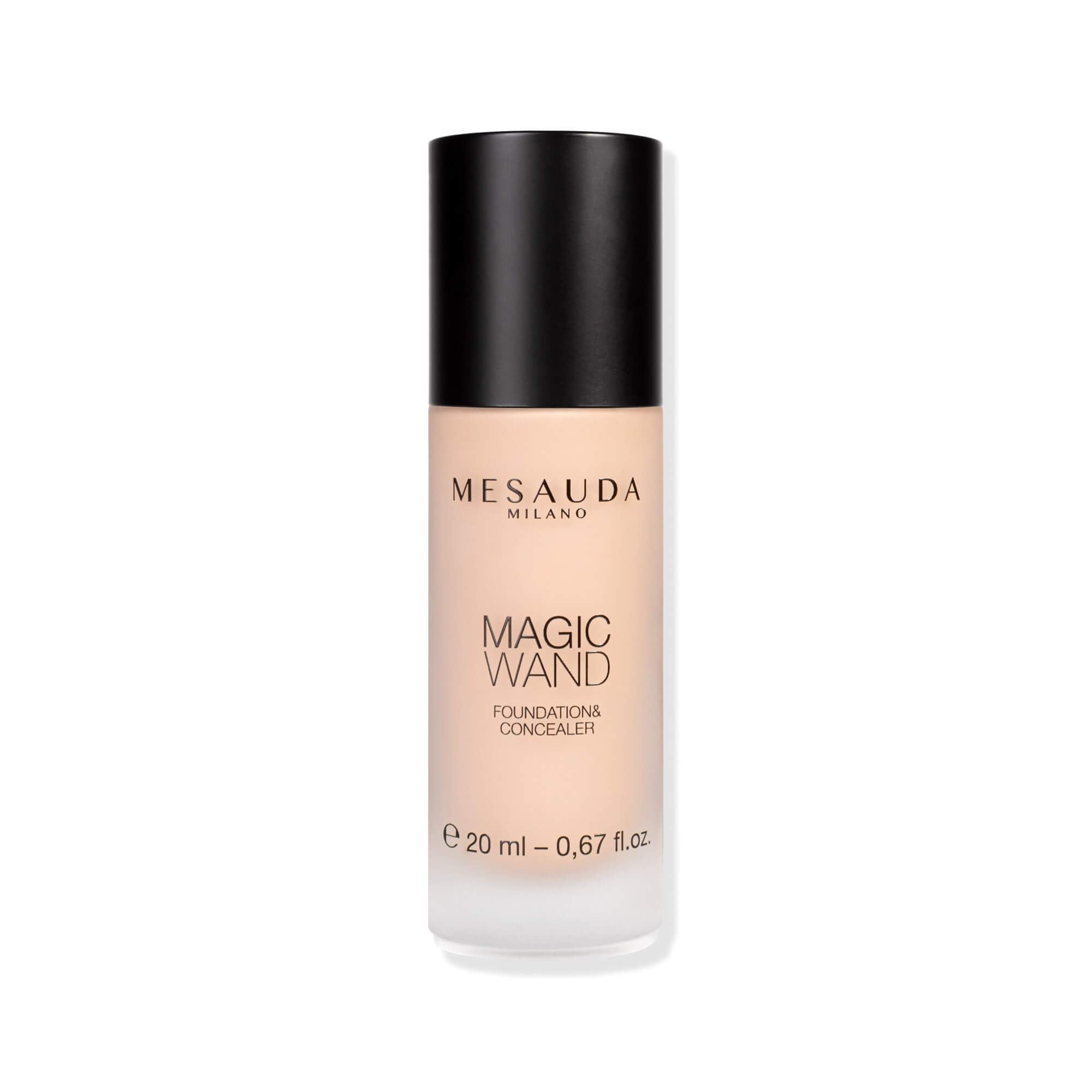 Magic Wand is the multifunctional foundation and concealer with an extraordinary second-skin effect. Like a compact magic wand, it conceals imperfections and protects the dermis. The end result is fresh and radiant, making correction unnecessary. Easy to apply with the applicator that provides comfort and softness on the skin. Available in 18 shades. - Large choice of shades and undertones - 24 hours of grip for a sublime and long-lasting perfection - protective effect, repairing and regenerating - Powder-colored and radiant matte finish - Medium coverage with thin film. Cruelty-free and vegan. Free from oils, parabens and liquid paraffin. Dermatologically tested on sensitive skin. Contents: 20 ml - 0.67 fl.oz. INSTRUCTIONS FOR USE Apply a small amount of the product to the center of the face and sweep it outwards with the applicator or fingers to achieve even and streak-free coverage.Free and vegan. Formula free from oils, parabens and liquid paraffin. Medium to high coverage with fine surface. Protective, repairing and regenerating effect. Lasts 24 hours for excellent and long-lasting perfection.Mesauda Milano Magic Wand C10 120 g Magic Wand is de multifunctionele foundation en concealer met een buitengewoon tweedehuid-effect. Als een compacte toverstaf verbergt hij onvolkomenheden en beschermt hij de dermis. Het eindresultaat is fris en stralend, zodat een correctie overbodig wordt. Eenvoudig aan te brengen met de applicator die comfort en zachtheid op de huid biedt. Verkrijgbaar in 18 tinten. - Grote keuze aan tinten en ondertonen - 24 uur grip voor een verheven en langdurige perfectie - beschermende werking, repareren en regenereren - Poederkleurige en stralende matte afwerking - Middelhoge dekking met dunne film. Dierproefvrij en veganistisch. Vrij van oliën, parabenen en vloeibare paraffine. Dermatologisch getest op gevoelige huid. Inhoud: 20 ml - 0,67 fl.oz. GEBRUIKSAANWIJZING Breng een kleine hoeveelheid van het product aan in het midden van het gezicht en veeg het met de applicator of de vingers naar buiten om een gelijkmatige en streepvrije dekking te bereiken.Vrij en veganistisch. Formule vrij van oliën, parabenen en vloeibare paraffine. Middelgrote tot hoge afdekking met fijn oppervlak. Beschermende, reparerende en regenererende werking. Houdt 24 uur voor een uitstekende en langdurige perfectie.