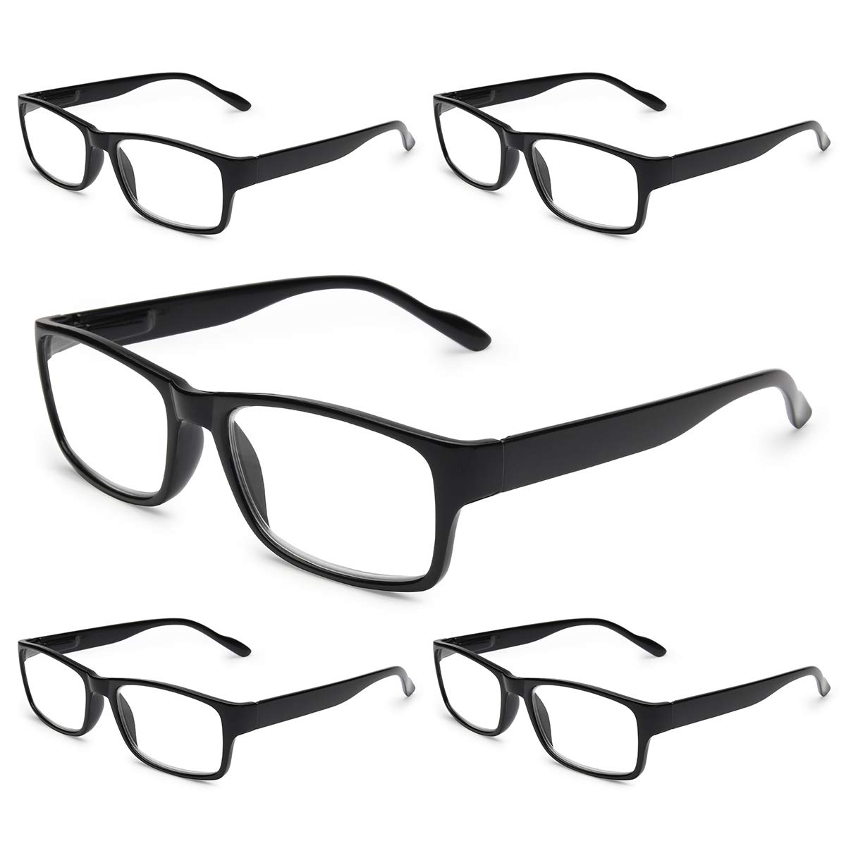 CUSTOMER SERVICE: If you have any trouble with the mens reading glasses or womens reading glasses, contact us! We'd be happy to help. 5 PAIRS INCLUDED: There are 5 pairs in this readers for men set. Just select your prescription, whether it be for reading glasses 1.5 or reading glasses 2.0 . STYLISH RESIN FRAME: The ultra-light and flexible resin material on the readers for women is great for durability and comfort. Plus, they're great as reading glasses for women or reading glasses men. REDUCE EYE STRAIN: No need to worry about blurred vision or headaches with these readers. These blue light reading glasses for women protect your eyes. ANTI-BLUE LIGHT GLASSES: Not only are these reading glasses great for any activity, but they're equipped with UV400 protection, so you don't have to worry about eye fatigue under blue lights.