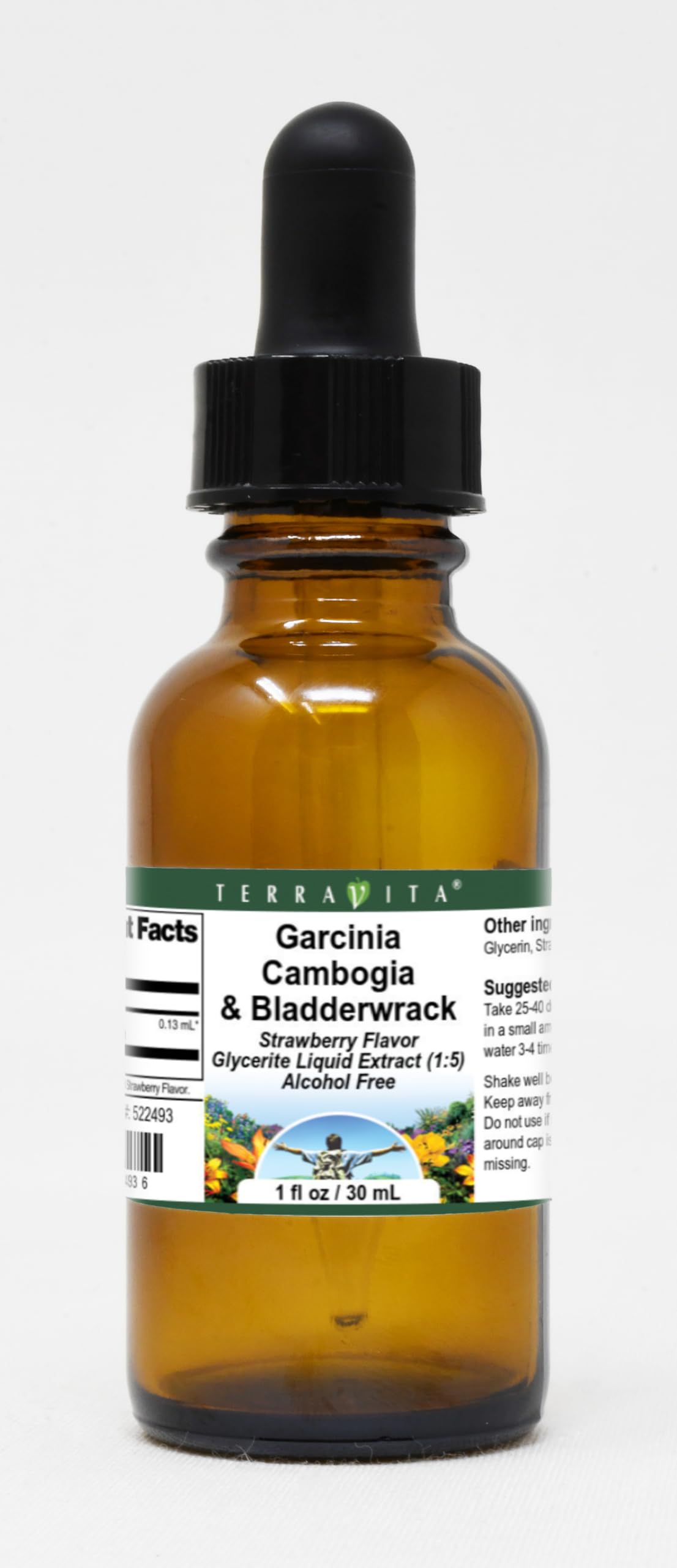 Garcinia Cambogia Bladderwrack Glycerite Liquid Extract (1:5) - Strawberry Flavored (1 oz, ZIN: 522493) Packaged in the United States in a GMP certified facility (Good Manufacturing Practice). No fillers. Manufacturer: TerraVita Size: 1 oz Convenient Liquid format. Ingredients: Artificial Strawberry Flavor, Glycerin (Vegetable Source), Bladderwrack, Garcinia Cambogia