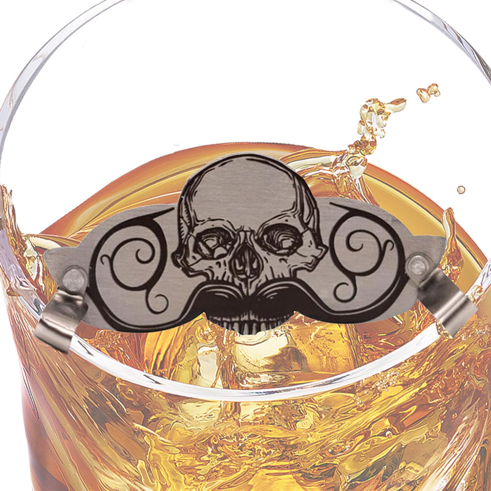 Garde-boisson moustache - Protection en acier inoxydable - Réutilisable - Design de crâne - Pour tasses à café, verres à bière, tasses à thé - Cadeau de soins amusant pour hommes avec Ba