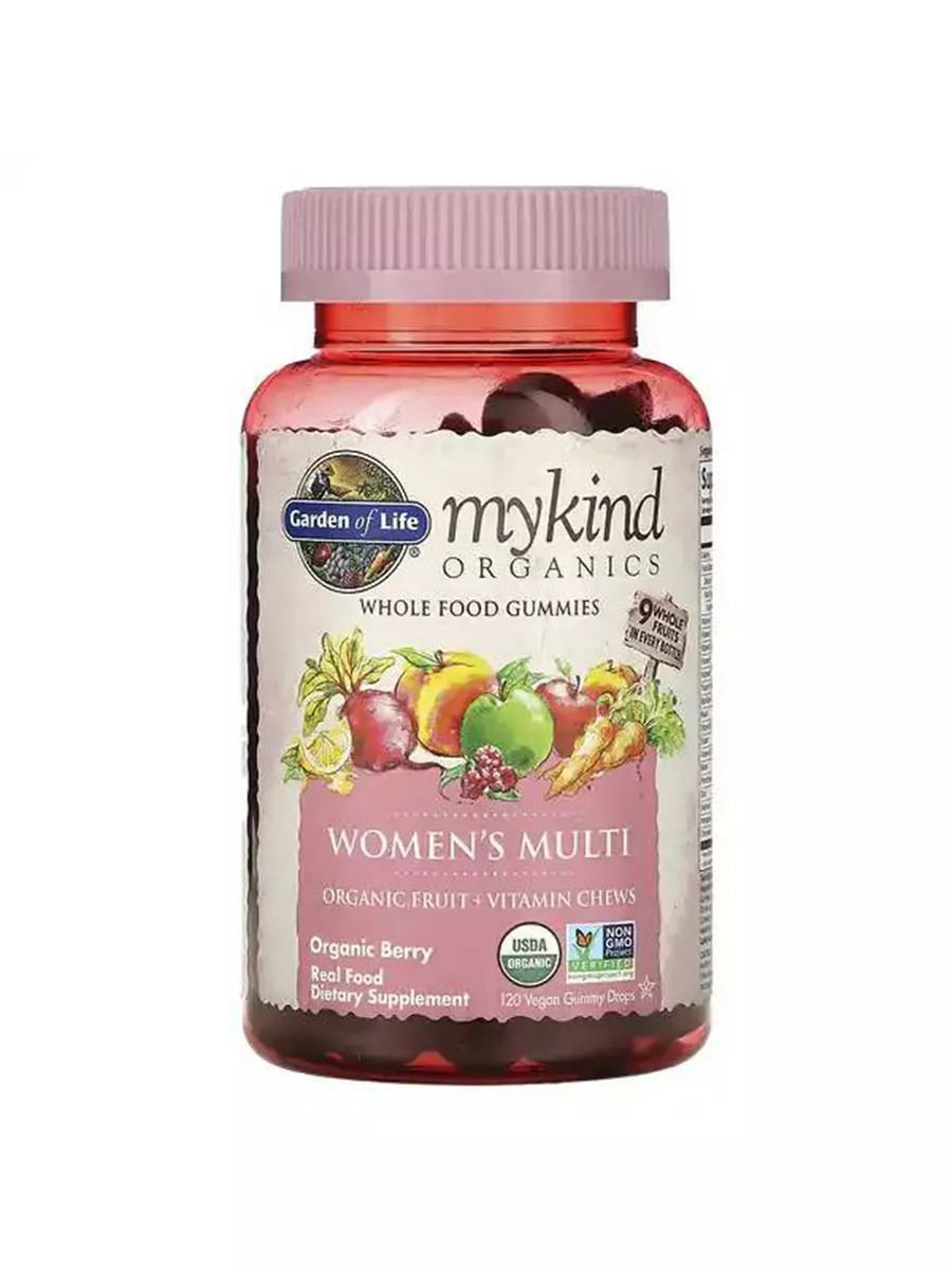 Жевательные таблетки Garden of Life MyKind Organics с органическими фруктами и витаминами для поддержки женского иммунитета. Способствует выработке энергии, улучшению метаболизма и здоровья мочевыводящих путей.