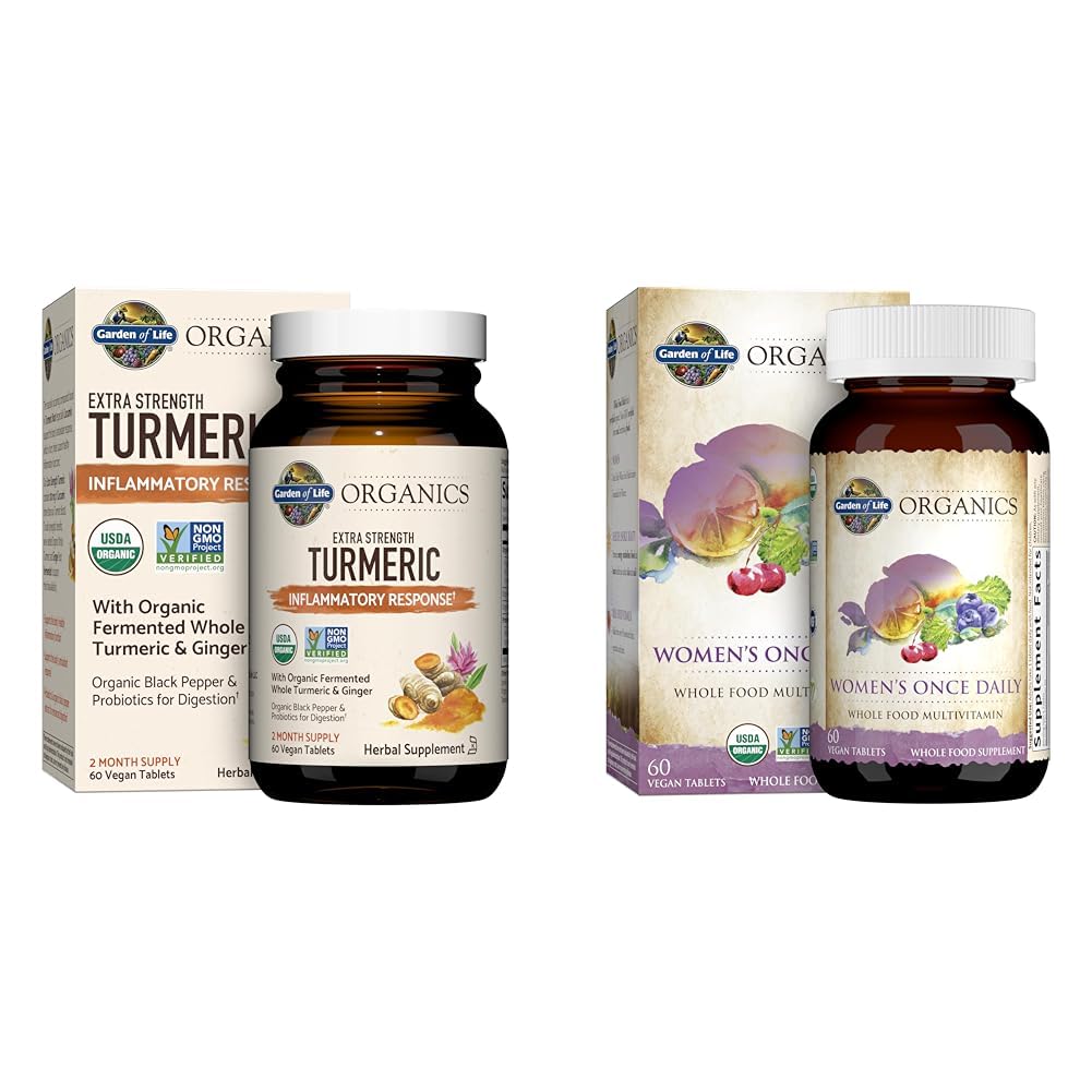 Garden of Life Organics Extra Strength 60 Tablets Turmeric & 60 Tablets Women's Once Daily Whole Food Multivitamin