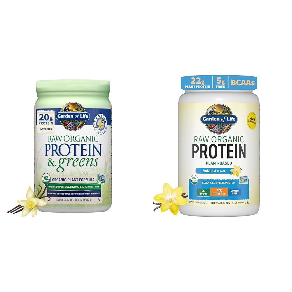 Product 2: DON'T TAKE THE HEAT: Made at low temperatures, Raw Organic Protein is anything but ordinary Scoop up digestive enzymes like lipase, lactase and papain plus live probiotics including probiotic Bacillus subtilis DE111 for digestion and proper absorption. Product 2: SHAKE IT UP: Raw Organic Protein has been shaken up to improved texture and mixability all while being sugar free Organic peas, sprouted grains, seeds, legumes plus whole food vitamins and minerals deliver nutrients you need with 1g total net carbs. Product 2: DOWNRIGHT DELICIOUS: We're taking a stand against chalky and bringing tasty back Not only is Raw Organic Protein now easy to mix and silky smooth, but our Vanilla Flavor is downright delicious Mix with water, blend in smoothies or add in to baked goods. Product 2: WHAT'S THE SCOOP: Rebuild broken muscle and reduce recovery time with 22g of complete plant-based protein and 4g of a complete branched chain amino acid profile But that's not all—stay satiated longer with 5g of fiber in just 130 calories per serving. Product 1: PROTEIN POWDER WITH PROBIOTICS: Tasty, smooth low carb protein shake with 1.5 Billion CFU probiotics and 13 non-GMO enzymes for easy digestion. Product 1: GREEN SUPERFOOD DRINK: This delicious Vanilla protein powder is power-packed with green energy from raw, Organic veggie and green juices including Spinach, Kale, Broccoli Alfalfa Grass. Product 1: POST WORKOUT RECOVERY: Help your muscles recover with a clean nutritional shake powered by Organic non-GMO whole food protein and nutrient-rich green energy. Product 1: HIGH PROTEIN: 20 grams of raw plant protein from Organic peas and sprouted Organic grains, seeds and legumes plus 6 Organic greens and veggies. nan.