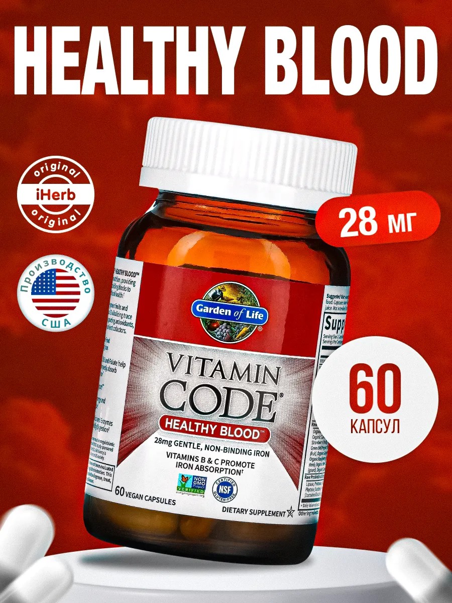 Garden of Life Vitamin Code Healthy Blood — это комплексная формула, разработанная для поддержки уровня железа в организме, здоровья крови и общего самочувствия. Содержит цельнопищевые источники железа, витамин C, витамины группы B и другие ключевые нутриенты для максимального усвоения.