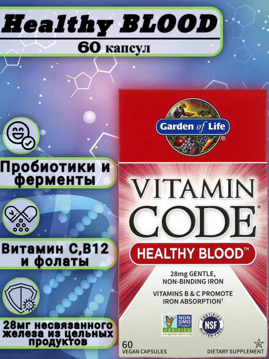 Garden of Life Vitamin Code Healthy Blood, Здоровая кровь 60 капсул