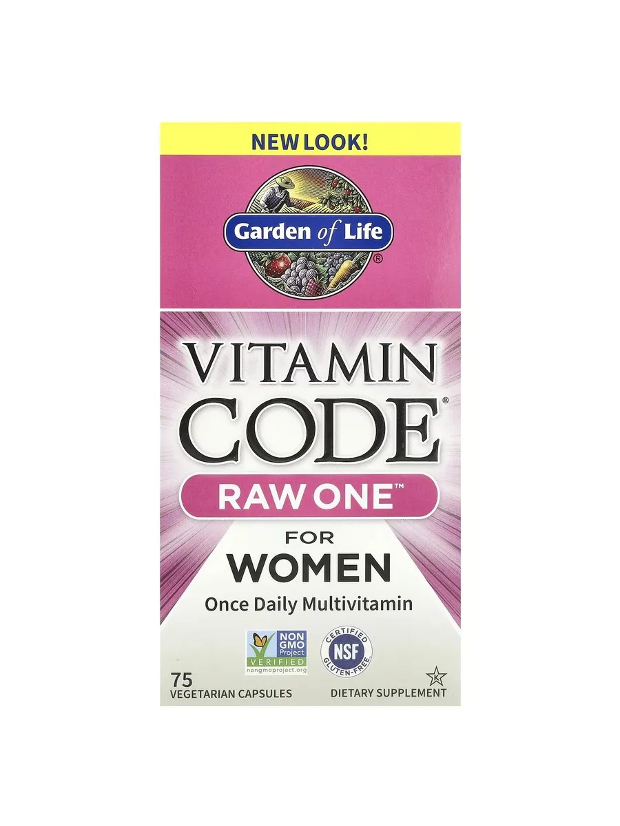 Garden of Life Vitamin Code RAW One, Мультивитамины для женщин с пробиотиками, 75 капсул