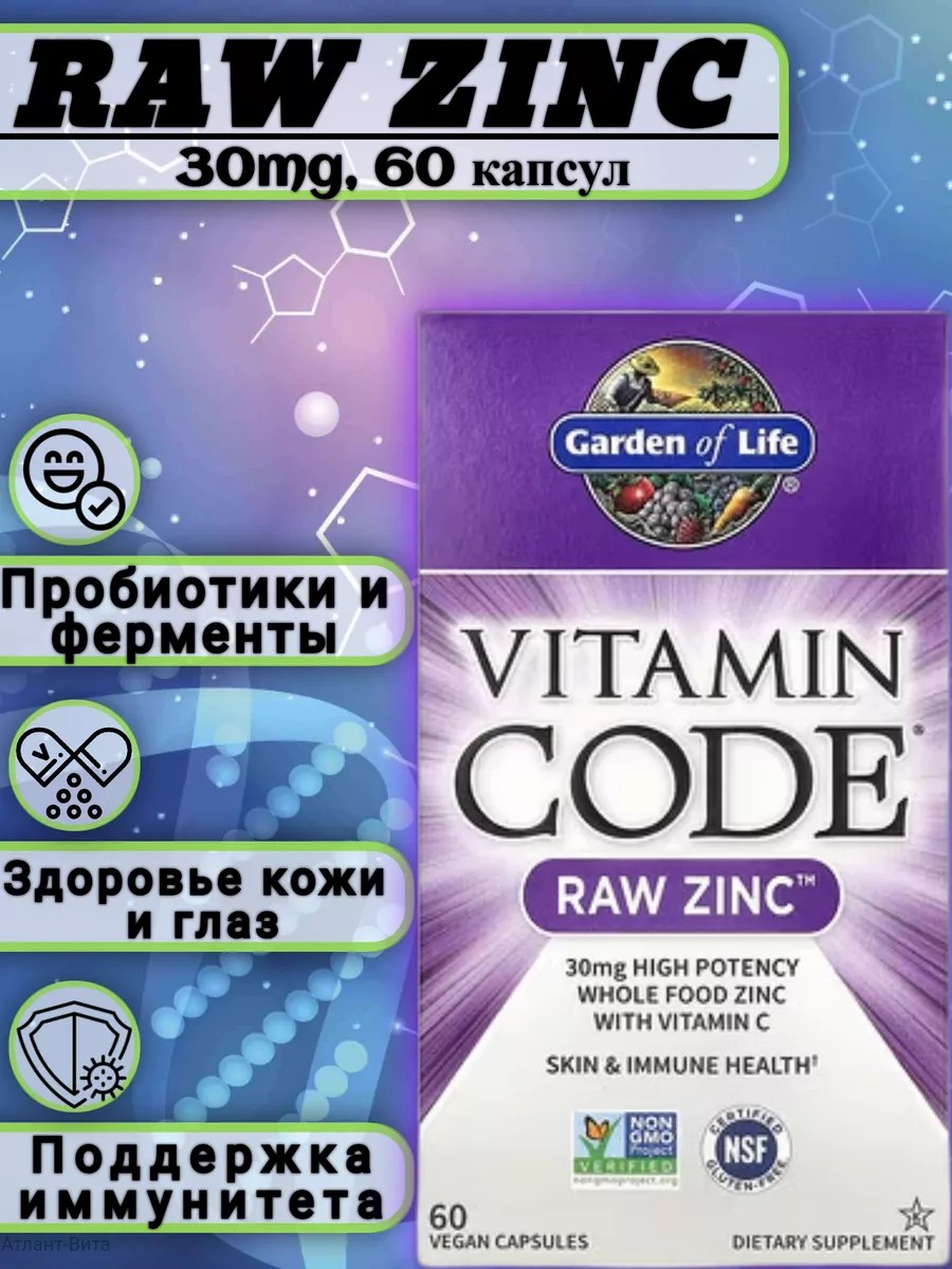 Garden of Life Vitamin Code RAW Zinc Цинк 30мг, Иммунитет, 60 капсул