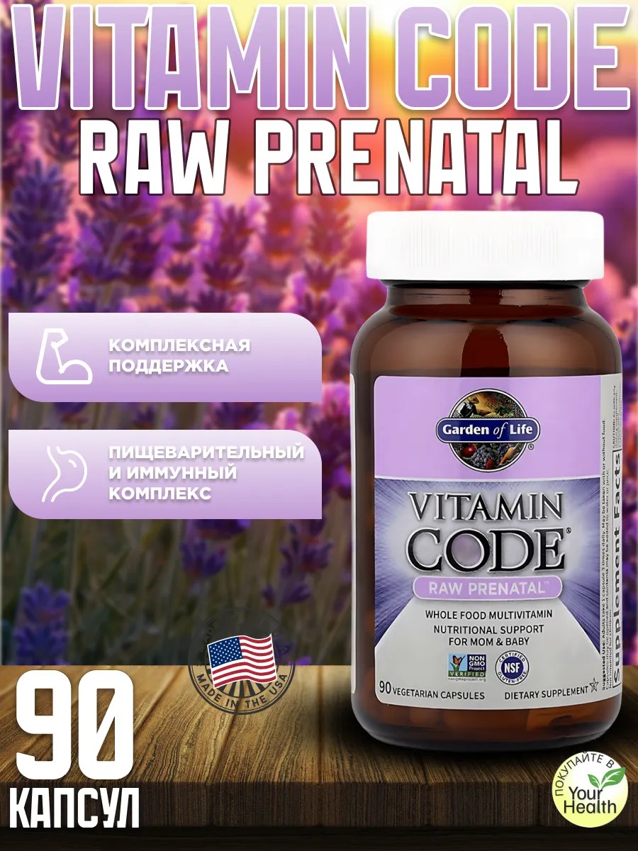 Vitamin Code Raw Prenatal - это комплекс, включающий множество питательных веществ из цельных продуктов, специально разработанный для удовлетворения особых потребностей женщин в период до, во время беременности и кормления грудью, обеспечивая питание как для матери, так и для ее развивающегося ребенка. 23 вида измельченных в порошок питательных органических выращенных фруктов и овощей содержат поддерживающие антиоксиданты, витамины и кофакторы питательных веществ. -800 мкг фолата для поддержки развития здоровой нервной трубки -27 мг железа в форме, не вредящей желудку, для здоровья крови и репродуктивной системы -1400 МЕ витамина D3 для оптимального пищевого усвоения кальция -Пробиотическая поддержка иммунной системы для мамы и ребенка Рекомендации по применению: Взрослым принимать по 1 капсуле 3 раза в день. Можно принимать независимо от приема пищи. Капсулу можно открыть и добавить ее содержимое в воду или свежий сок. Продукт не предназначен для детей. Состав: Витамин A (в виде бета-каротина) Витамин C (из органических ягод амлы) Витамин D (в виде D3 из культуры S. cerevisiae) Витамин E (в виде d-альфа токоферола из подсолнечного масла) Витамин K (в виде K1 из культуры S. cerevisiae) Тиамин (B1 из культуры S cerevisiae) Рибофлавин (B2 из культуры S. cerevisiae) Ниацин (в виде никотинамида из культуры S. cerevisiae) Витамин B6 (из культуры S. cerevisiae) Фолат (из культуры S. cerevisiae) Витамин B12 (в виде метилкобаламина из культуры S. cerevisiae) Биотин (из культуры S. cerevisiae) Пантотеновая кислота (из культуры S. cerevisiae) Железо (из хелата коричневого риса) Йод (из органических морских бурых водорослей) Цинк (из хелата коричневого риса) Селен (из культуры S. cerevisiae) Марганец (из хелата коричневого риса) Хром (из культуры S. cerevisiae) Молибден (из хелата коричневого риса) Витамин K2 (в виде менахинона-7) Смесь органических необработанных фруктов и овощей Пренатальная смесь для пищеварения: Липаза, протеаза, аспергилопепсин, бета-глюканаза, целлюлаза, бромелаин, фитаза, лактаза, папаин, пептидаза, пектиназа, ксиланаза, гемицеллюлаза, [болгарская палочка (Lactobacillus bulgaricus), лактобактерии плантарум (Lactobacillus plantarum), лактобактерии рамнозус (Lactobacillus rhamnosus) HN001] (6 млрд КОЕ)