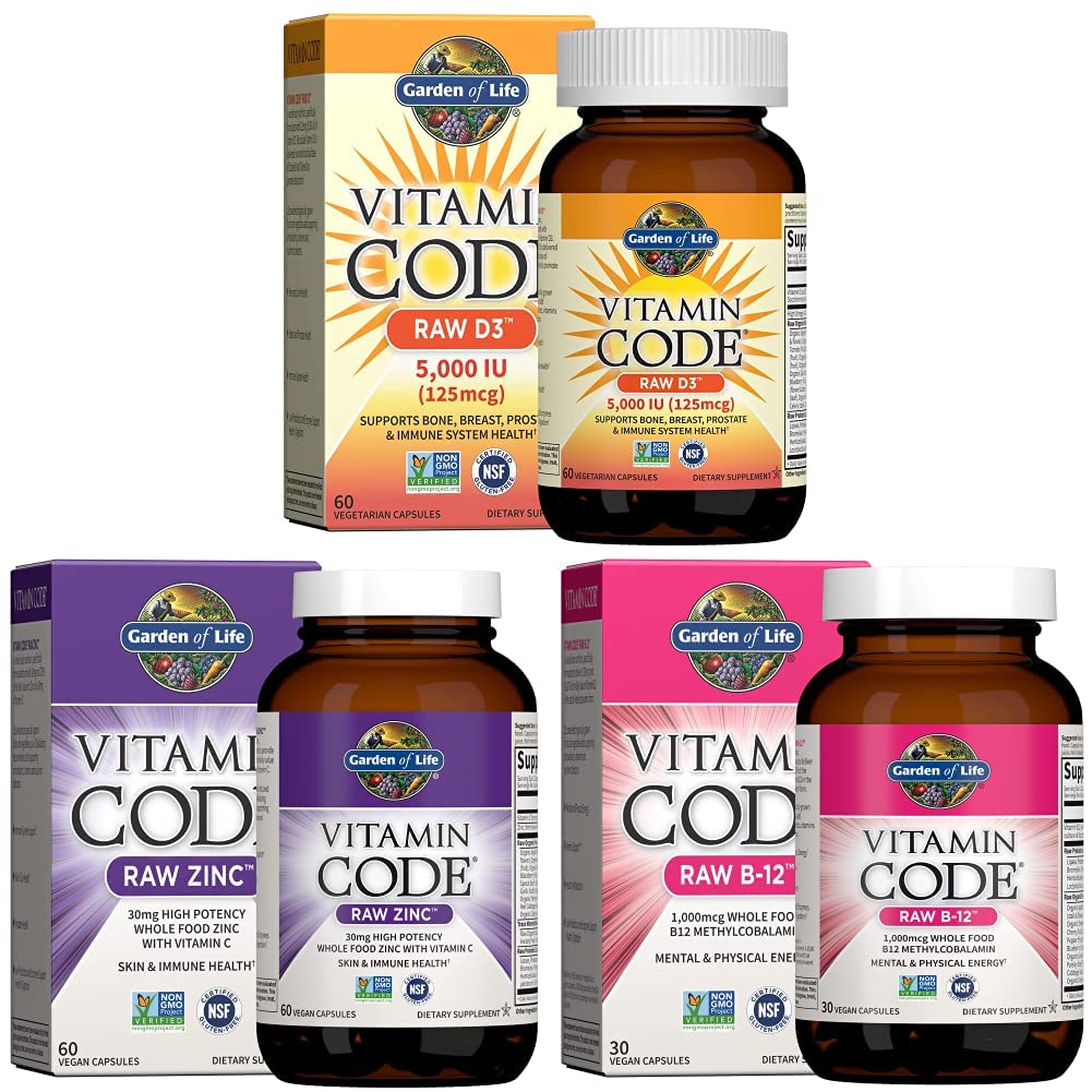 Garden of Life Vitamin D Vitamin Code Raw B12 Zinc & Vitamin C - Whole Food Supplements for Immune Support