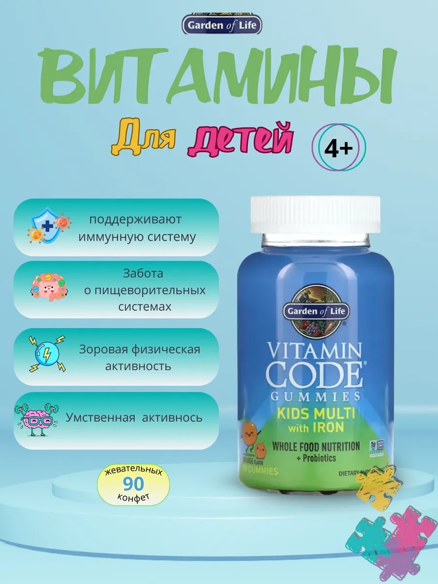 Garden of Life, Vitamin Code Gummies, Kids Multi with Iron, Orange, 90 Gummies